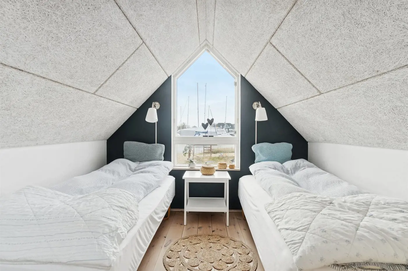 Die Schlafplätze verteilen sich auf 2 Schlafräume. 2 Schlafplätze in Einzelbetten. 2 Schlafplätze auf einer Doppelschlafcouch.