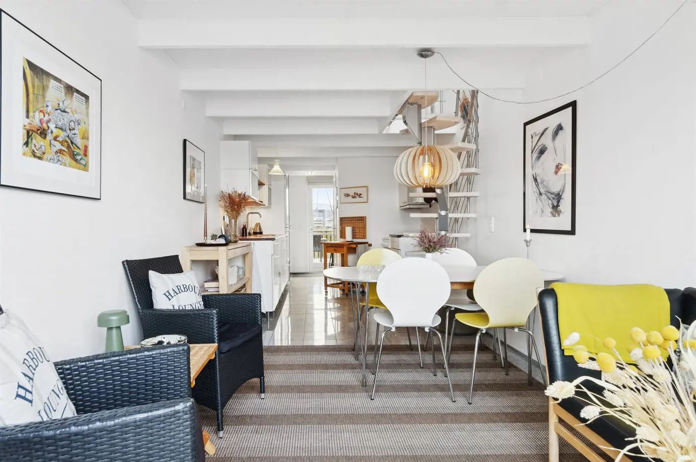 Im Inneren wirkt das Ferienhaus hell und einladend mit einer funktionalen Einrichtung, die perfekt für eine kleine Familie mit Kindern oder aber auch für ein Paar geeignet ist, das einen Urlaub in zentraler Lage in diesem gemütlichen Ferienort verbringen möchte. Im Erdgeschoss findest du eine schöne Küche und ein kleines Wohnzimmer mit Essbereich und direktem Zugang zur Terrasse.