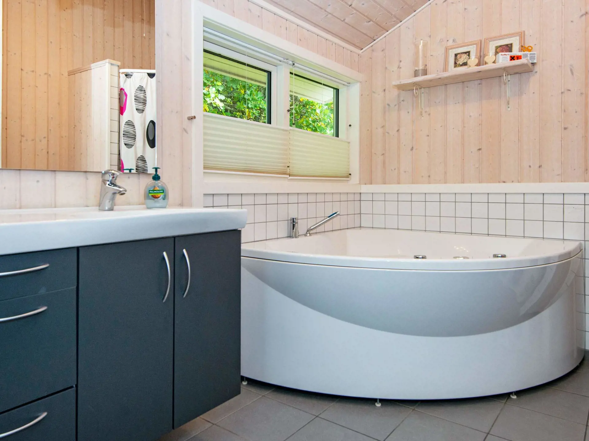 Dieses Ferienhaus liegt mitten in der Natur, so dass Sie hier mit etwas Glück viele Tiere sehen können. Das Haus wurde in der Nähe eines schönen Badestrandes errichtet, den Sie innerhalb von 5 Minuten zu Fuss erreichen können. Zu dem Haus gehören u.a. 3 SZ, eine gut ausgestattete Küche sowie ein Bad mit Whirlpool und Sauna. Geringe Entfernung zu mehreren Golfplätzen und auch nicht weit in das Djurs Sommerland, wo Sie auf jeden Fall 2 Tage verbringen können.