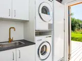 Dieses Ferienhaus mit Whirlpool im Bad liegt bei Fjellerup Strand. Die 120 m2 Wohnfläche des Ferienhauses verteilen sich auf einen 44 m2 großen, offenen Küchen-/Wohnbereich mit Ess- und Sitzecke für das Familienleben sowie auf fünf Schlafzimmer mit gutem Schlafkomfort und auf zwei Badezimmer, beide mit Dusche. Es gibt auch eine Waschmaschine und einen Wäschetrockner im Haus, das durchgehend hell und modern eingerichtet ist.