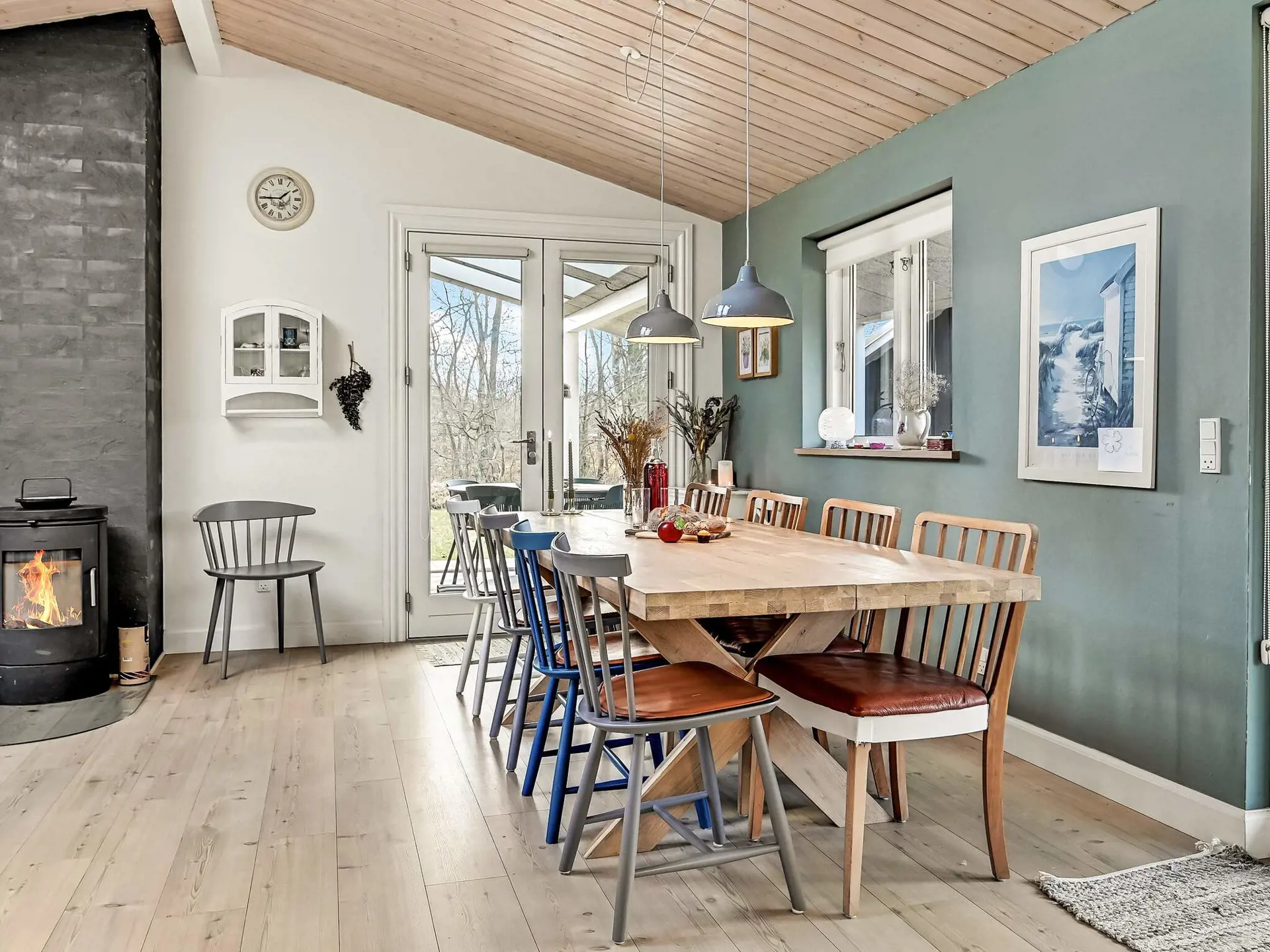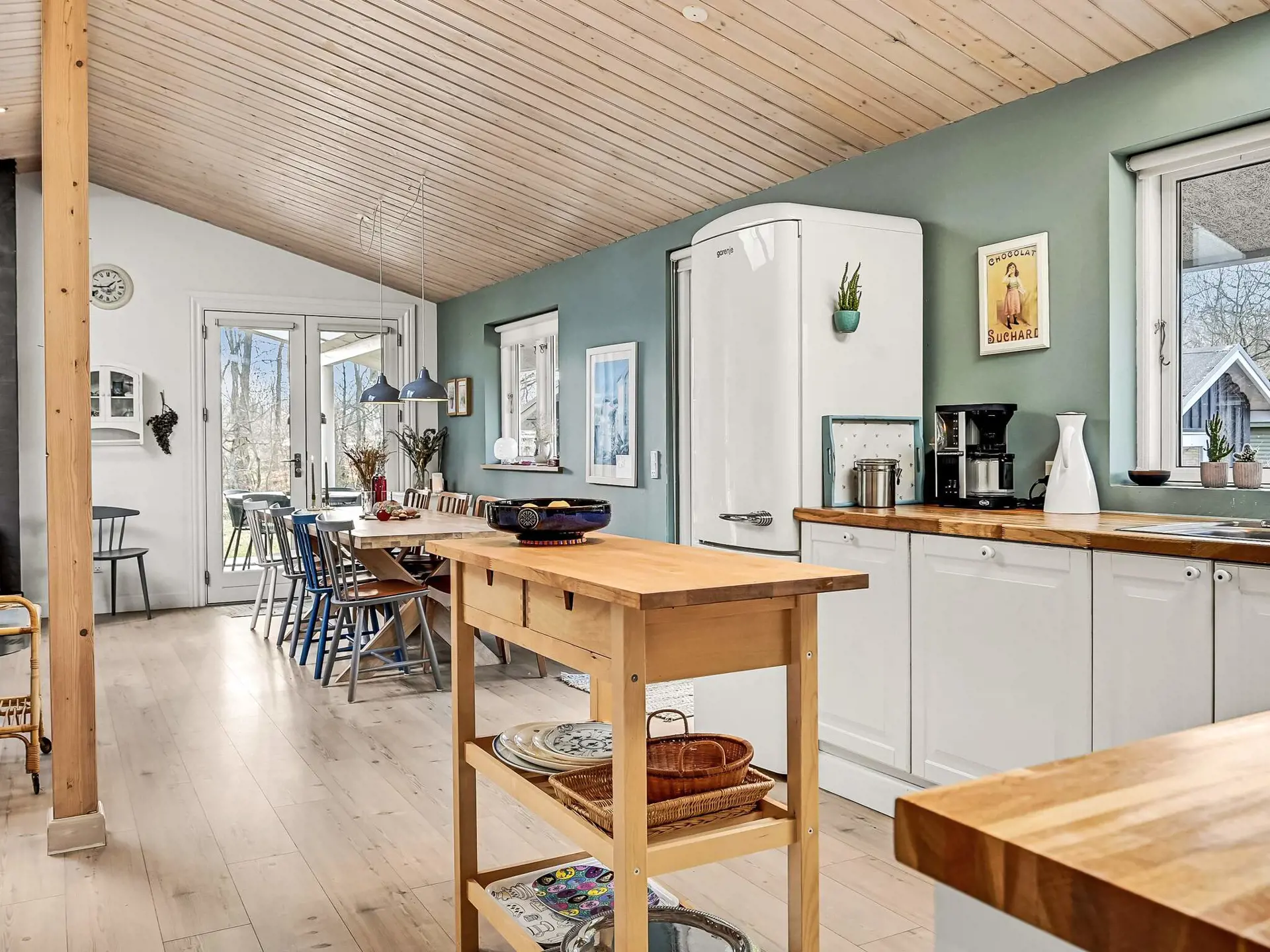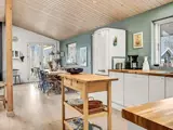 Gemütliches Ferienhaus im älteren Teil des Ferienhausgebiets von Fjellerup. Das Haus verfügt über einen familienfreundlichen Küchen-/Wohnbereich, in der Sie gemeinsame kochen und danach auf dem Sofa entspannen oder am Esstisch Brettspiele spielen können.