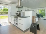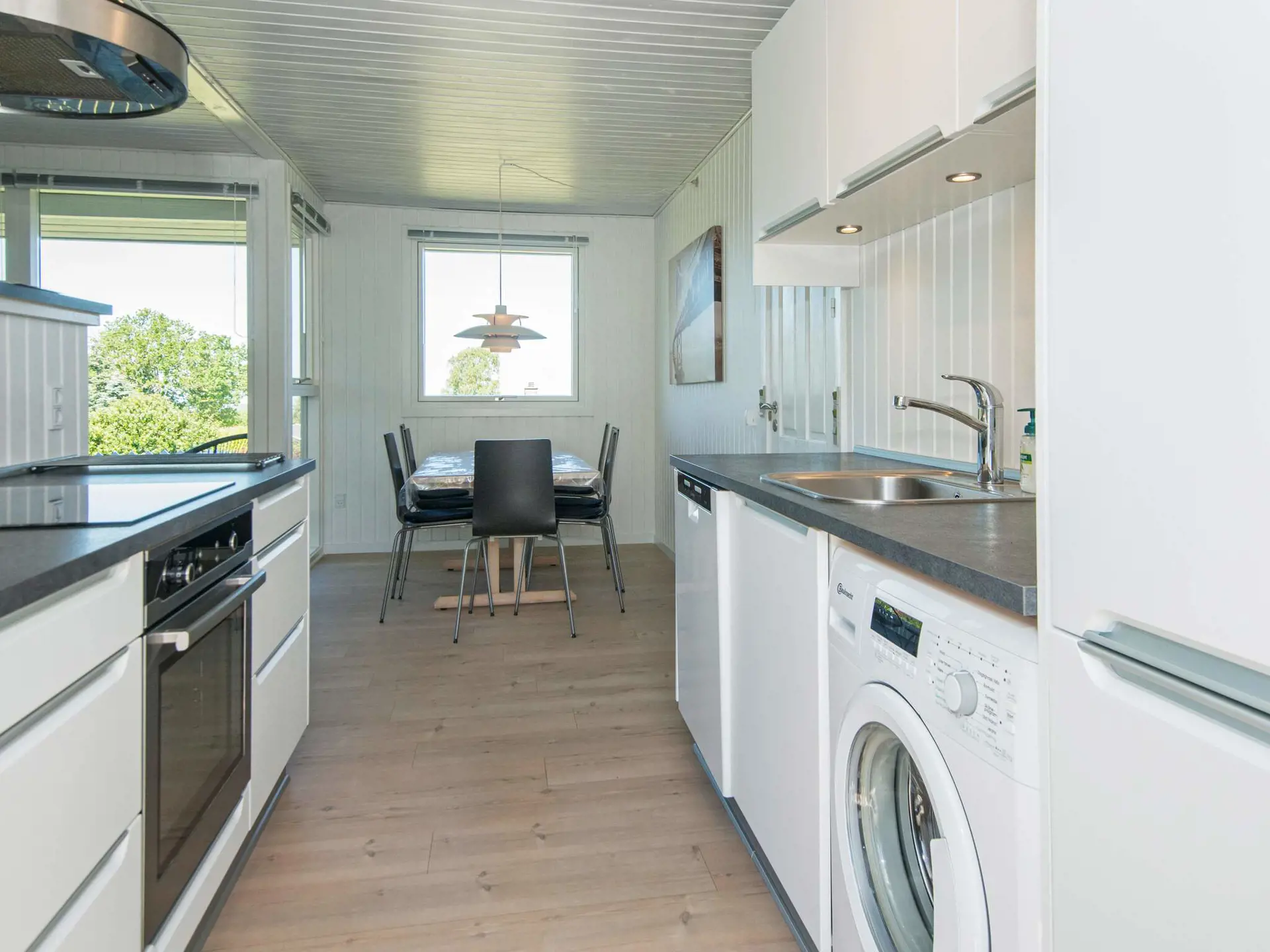 Erhöht gelegenes Ferienhaus mit einzigartigem Meerblick von der Küche sowie dem Wohn- und Schlafzimmer! Das Haus hat eine gut ausgestattete Küche mit Wohn- und Essbereich im direkten Anschluss daran. Großflächiges Naturgrundstück das zum Spielen und Ballspielen einlädt. Fast um das gesamte Haus herum verteilen sich eine 60 m² große offene sowie eine 50 m² große, geschlossene Terrassenfläche. Von der Terrasse aus haben Sie eine fantastische Aussicht in die Umgebung sowie Blick zum Strandufer und einen einzigartigen Meerblick mit Sonnenuntergang. Der Strand liegt ca. 2 Minuten zu Fuß entfernt und ist ein guter Badestrand. Ein Lebensmittelgeschäft findet man auf dem Campingplatz, ca. 300 m vom Haus entfernt.
