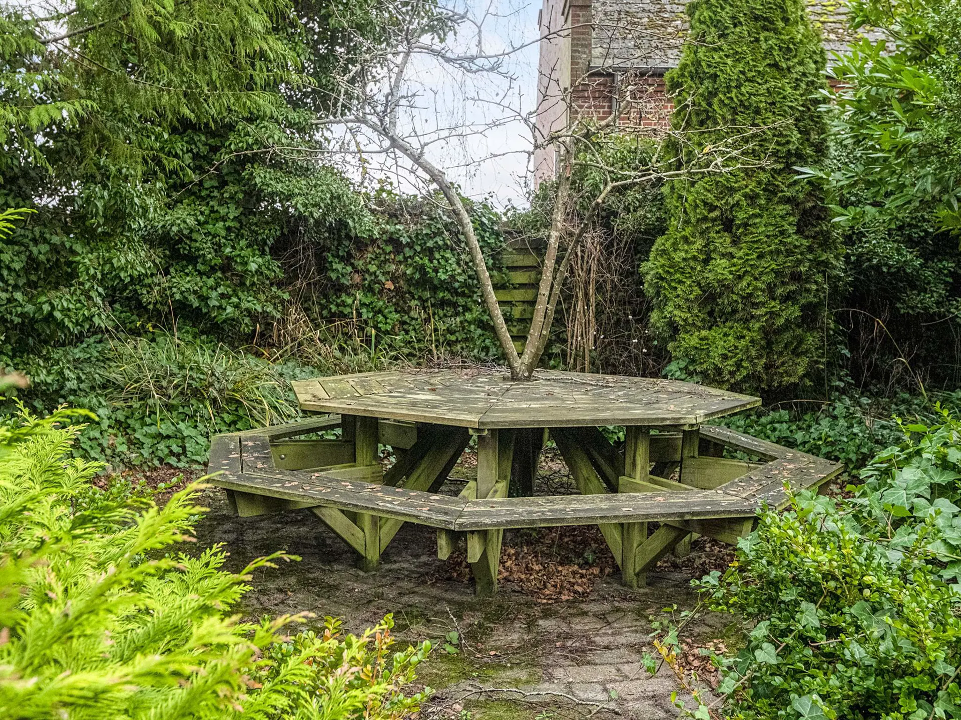 Draußen erwartet Sie ein kleiner, grüner Garten, umgeben von Ruhe und Privatsphäre – ideal für den Morgenkaffee und Gespräche am Tisch und auf der Bank bis spät in den Abend.