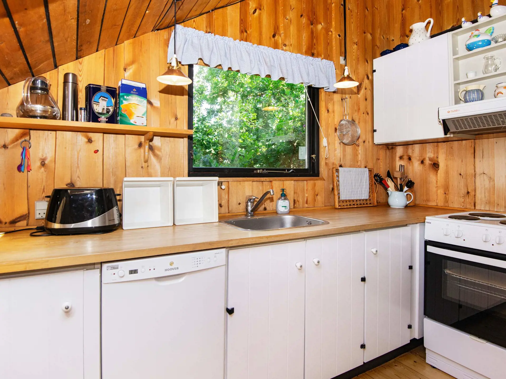 Ferienhaus nur etwa 700 m vom attraktiven Strandufer bei Fjellerup. Im Inneren findet man einen offenen Küchen-/Wohnbereich für das Familienleben, inklusive Essecke mit Sitzbank und Holzofen. Zudem gibt es drei Schlafzimmer mit insgesamt fünf Schlafplätzen in Betten und ein Bad mit Dusche, WC und Waschmaschine.