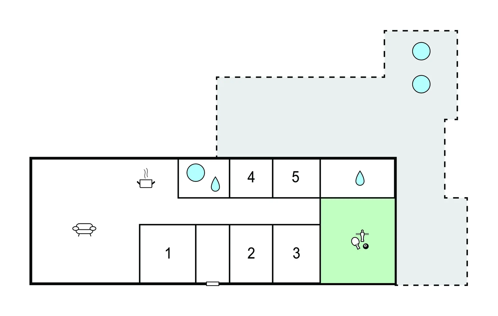 Dieses Haus ist genau das richtige für Sie, wenn Sie mit mehreren Familien oder einem großen Freundeskreis unterwegs sind. Sie finden hier viel Platz zum Erholen, für gemeinsame Mahlzeiten und jede Menge Angebote, um einen aktiven Urlaub zu verbringen. Machen Sie es sich auf dem großen Sofa beim Filmeschauen bequem, zaubern Sie leckere Speisen in der modernen Küche oder spielen Sie eine Runde Billard.