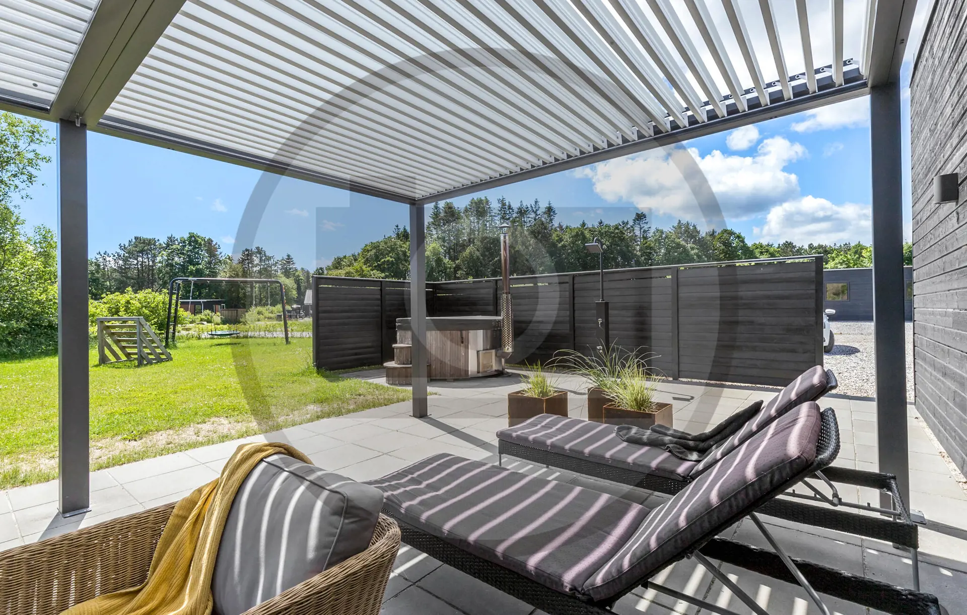 Öffnen Sie die Terrassentüren und treten Sie hinaus auf die teilweise überdachte Terrasse. Entspannen Sie im Außen-Whirlpool und lassen Sie den Blick über das Grundstück schweifen. Entfachen Sie am Abend ein Feuer an der Feuerstelle und verbringen Sie gesellige Stunden unter freiem Himmel. Nutzen Sie die Petanquebahn für ein kleines Turnier oder genießen Sie einfach die ruhige Lage inmitten der Grünflächen.