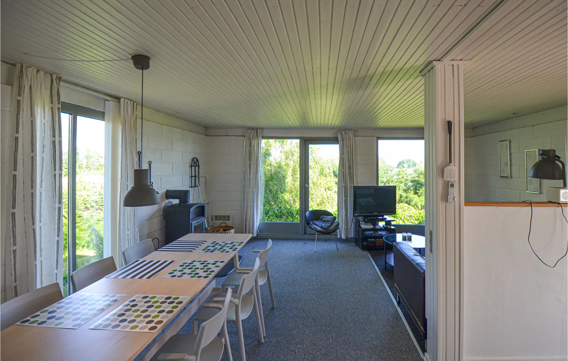 In ruhiger Lage erwartet Sie Ihr klassisches Ferienhaus, das ideal für Familien ist, zu einem erholsamen Urlaub. Nur wenige Gehminuten trennen Sie vom schönen Badestrand, der sich hervorragend zum Schwimmen und Angeln eignet. Das Haus ist einfach ausgestattet, aber praktisch gestaltet. Der Wohnbereich bietet Platz für gemeinsame Mahlzeiten und gemütliche Abende. Die großen Panoramafenster zum Strand hin schaffen ein helles Ambiente und bieten einen schönen Ausblick.