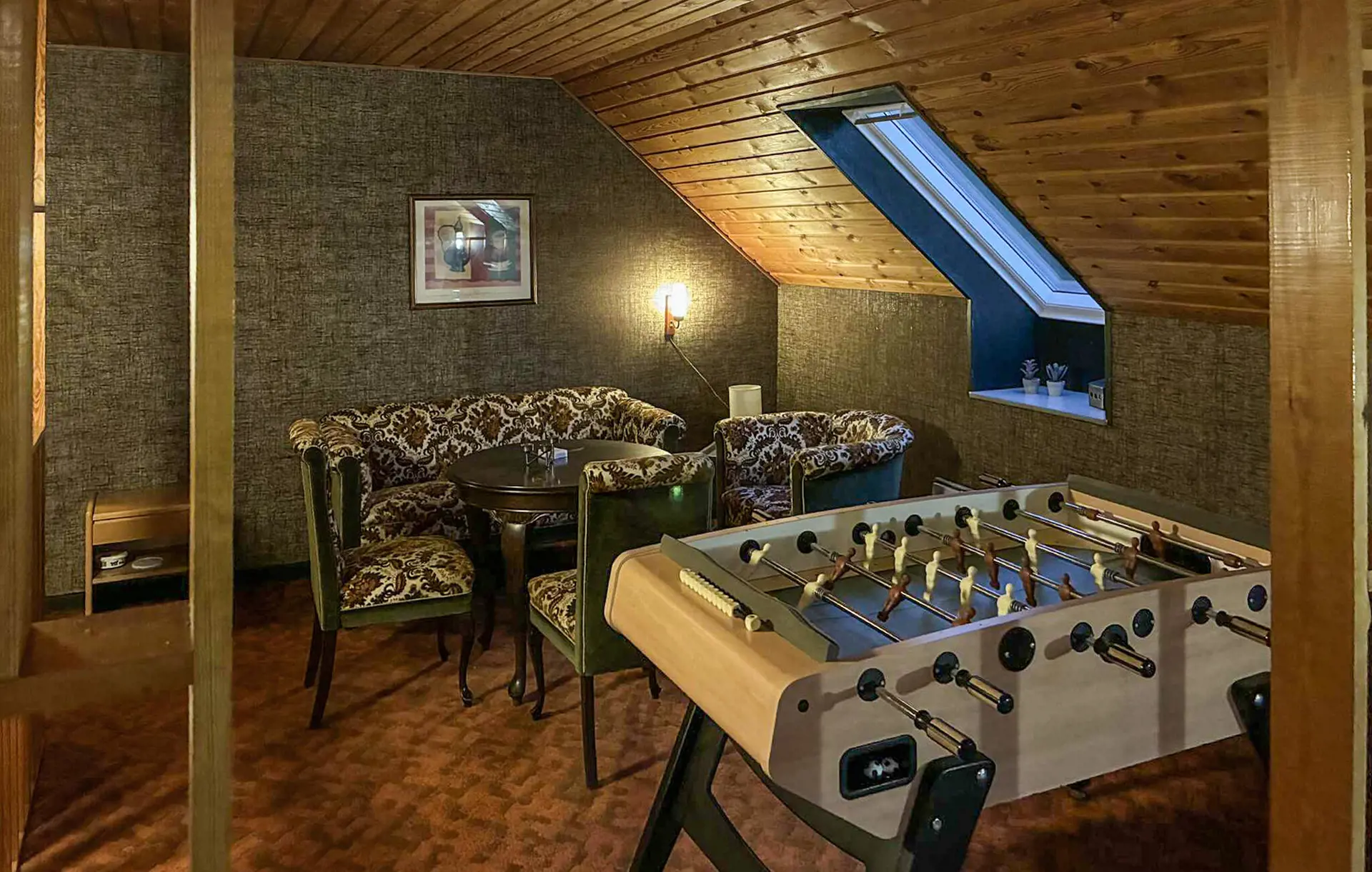 In diesem gemütlichen Haus laden ein heller Wohnraum mit Esstisch und eine praktische Küche zu einer entspannten Auszeit vom Alltag ein. Genießen Sie lange Filmabende, haben Sie Spaß bei Brett- und Kartenspielen oder spielen Sie eine Runde Tischfußball. Wenn Sie möchten, tragen Sie einen kleinen Wettkampf am Pooltisch aus und stoßen hinterher mit einem Glas Wein auf den Gewinner an.