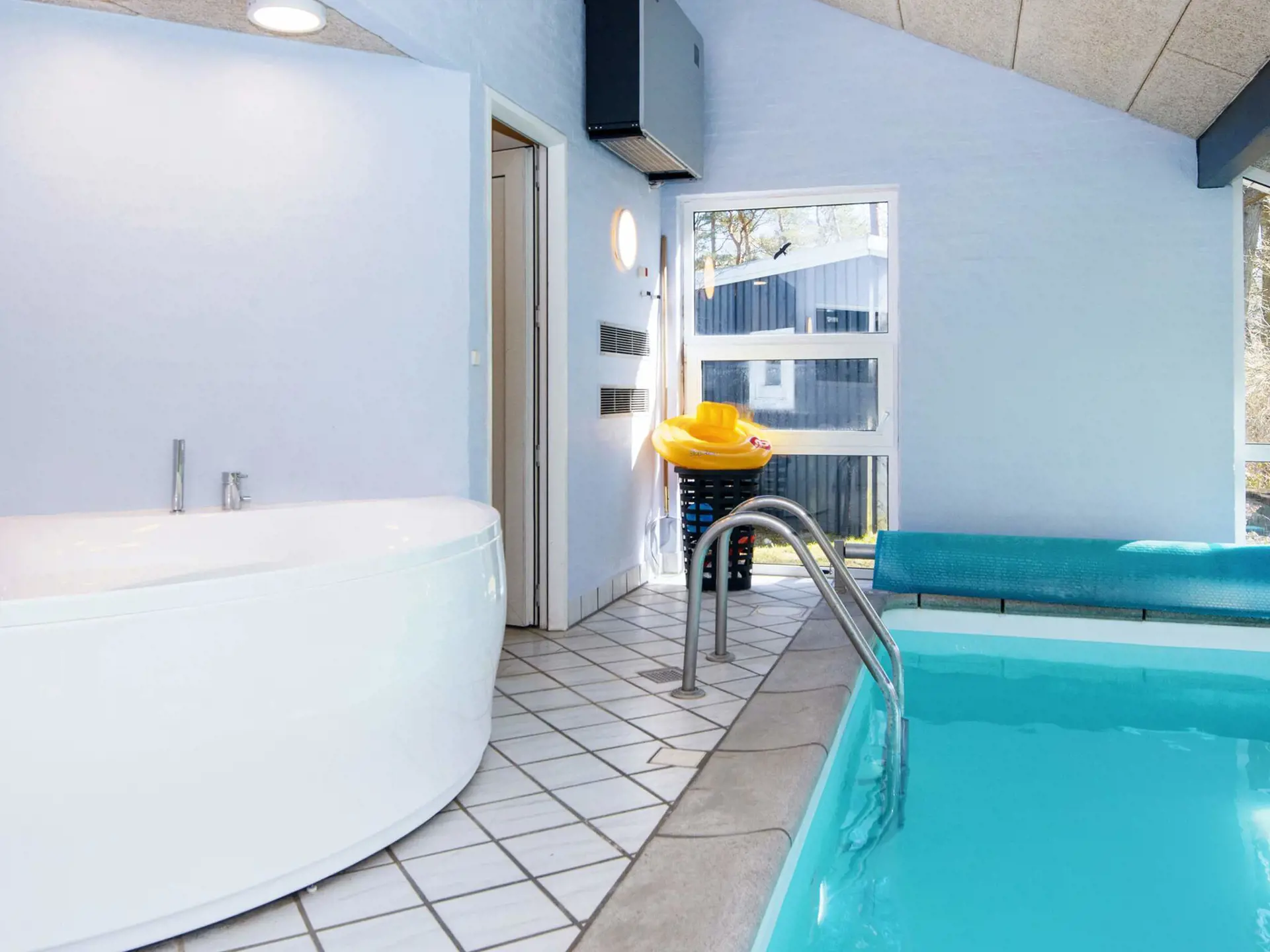 Im Poolbereich des Hauses findet man einen Swimmingpool (480 x 310 cm) mit 130 cm Tiefe und flacherem Kleinkinderbereich, einen Whirlpool für 2 Personen und ein großes Badezimmer mit Dusche und Fußbodenheizung. Von diesem Badezimmer aus haben Sie Zugang zu einer Sauna. Des Weiteren steht ein zweites Badezimmer mit Fußbodenheizung und Dusche im Haus zur Verfügung.