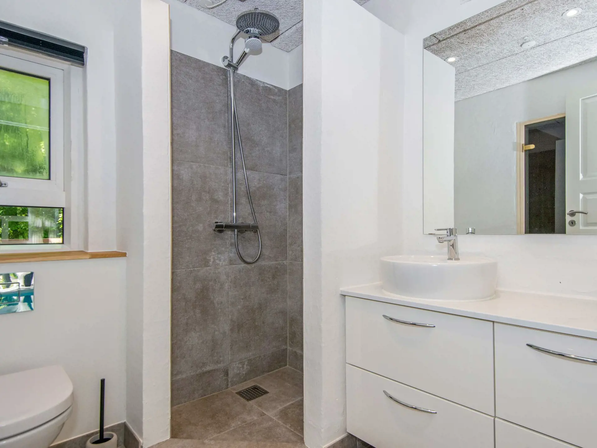 Im separaten Poolbereich kann sich die ganze Familie ganz dem Badespaß und der Erholung widmen, sei es im Pool, in der warmen Sauna oder im sprudelnden Whirlpool mit Platz für bis zu vier Personen. Vom Poolbereich aus hat man direkten Zugang zu einer schönen, geschützte Terrassenfläche mit Badezuber und Blick in den Wald.
