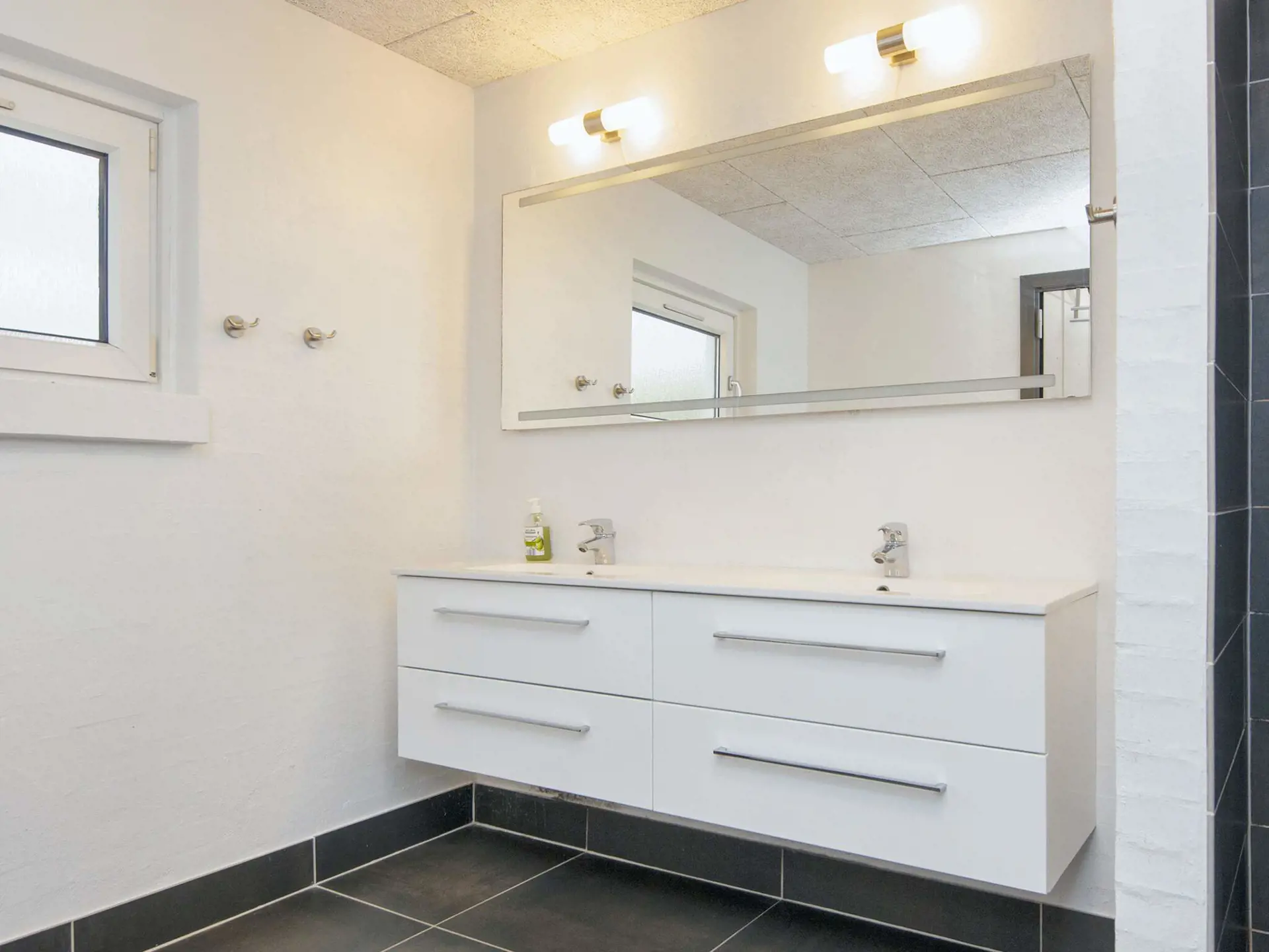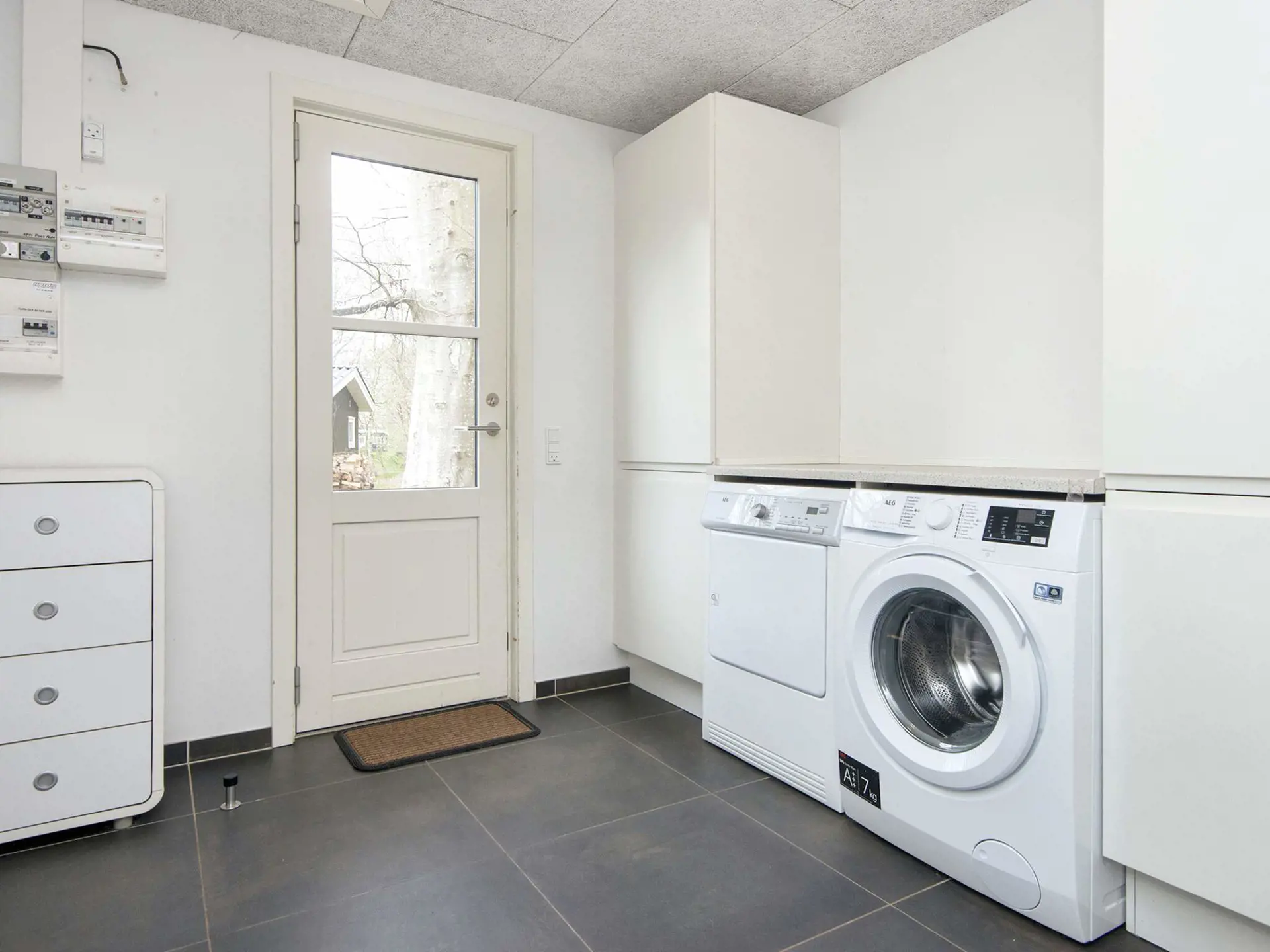 Dieses Ferienhaus hat eine eigene Poolabteilung mit einem 18 m² großen Swimmingpool, wo sich die ganze Familie herrlich in dem nassen Element vergnügen kann, um sich anschließend in dem Standwasser-Whirlpool oder der Sauna zu entspannen. Die große, offene Terrasse lädt zu Sommeraktivitäten ein und im Winter oder an kühleren Abenden sorgt der Holzofen im Wohnzimmer für eine gemütliche Atmosphäre. Dieses herrliche Haus bietet den perfekten Rahmen für schöne Ferien und ist ein guter Ausgangspunkt für viele Ferienerlebnisse in Ostjütland. Es ist gut ausgestattet, geschmackvoll eingerichtet und liegt auf einem 1500 m² großen, eingezäunten und mit Bäumen bewachsenen Naturgrundstück in einem Ferienhausgebiet am Fjellerup Strand.