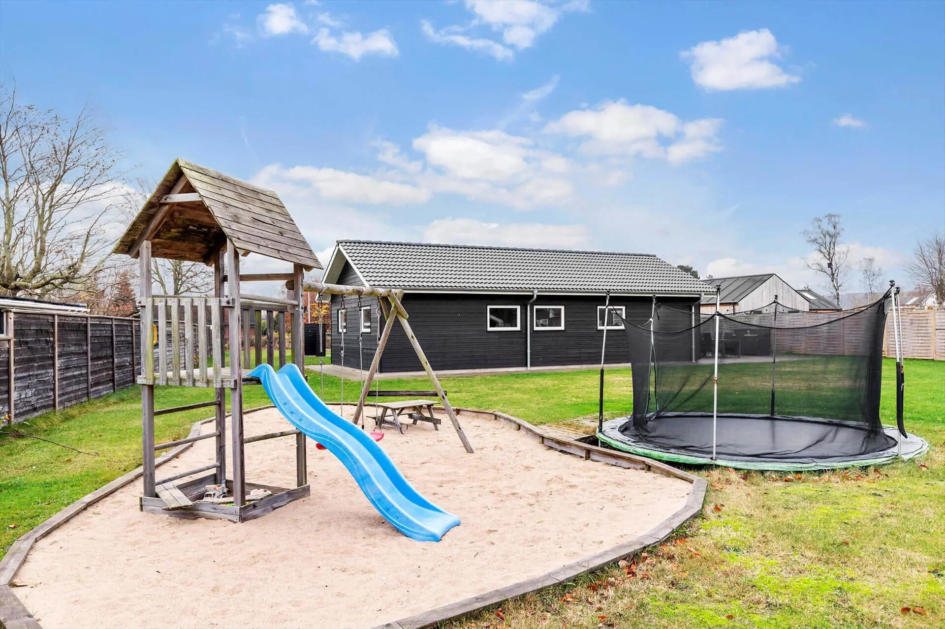 Diese Unterkunft hat eine Fläche von 182 m² und befindet sich auf einem 1.218 m² Grundstück, u.a. mit Schaukel, Sandkasten und Trampolin.