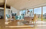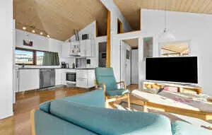 Das Haus liegt auf einem kleinen, abgeschlossenen Naturgrundstück, nur wenige Gehminuten vom beliebten, kinderfreundlichen Strand entfernt, und lädt zu Entspannung und gemütlichen Familienstunden ein. Backen Sie gemeinsam mit den Kindern einen Kuchen für den Nachmittagskaffee in der gut ausgestatteten Küche und machen Sie es sich danach mit einem guten Buch auf dem Sofa gemütlich. Die großen Fenster im Wohnzimmer sorgen für viel Licht und einen schönen Blick auf die Umgebung. Bei schönem Wetter gelangen Sie direkt vom Wohnzimmer auf die überdachte Terrasse und genießen ein leckeres Frühstück. Freuen Sie sich darüber, nicht zur Arbeit eilen zu müssen, und verbringen Sie lange Abende bei einem Glas Wein. Am nächsten Tag wartet der Strand auf die ganze Familie.