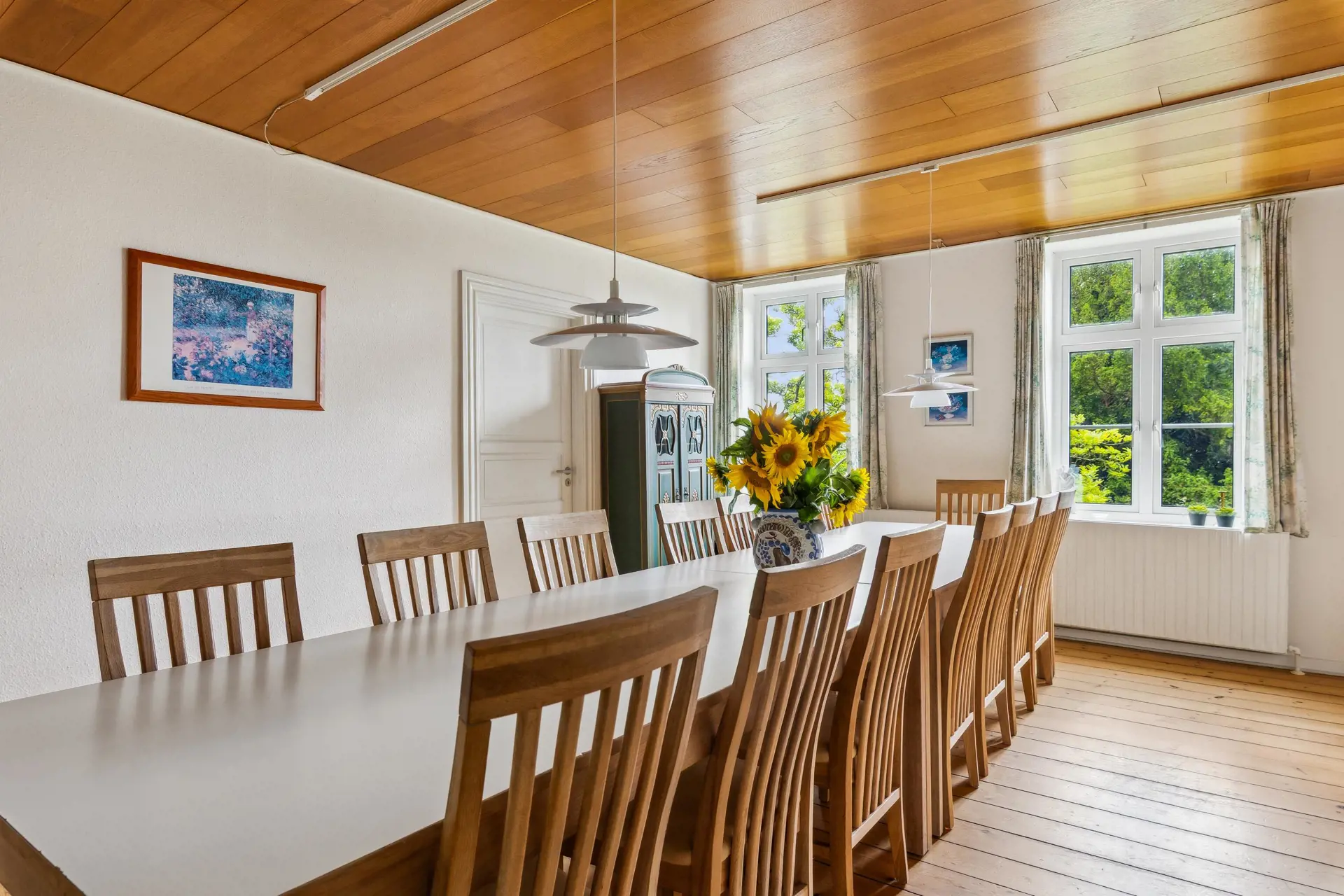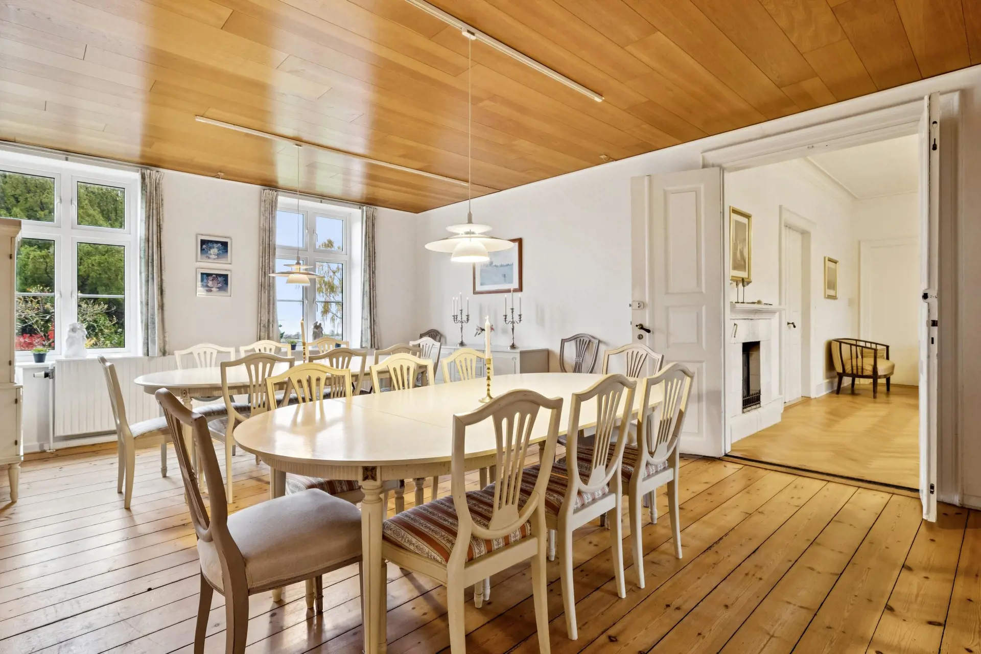 Wird das gesamte Røndegård gemietet, entsteht ein einzigartiger Rahmen für große Veranstaltungen. Die Trauung kann im Garten mit wunderschönem Blick über das Wasser stattfinden, der Empfang im Haupthaus mit seiner herrschaftlichen Atmosphäre, und das Abendessen im großen Festsaal des Westflügels. Gleichzeitig wohnen die Gäste nah beieinander, genießen dennoch Privatsphäre in den einzelnen Zimmern und erleben die seltene Kombination aus Nähe, Komfort und wunderschöner Natur.