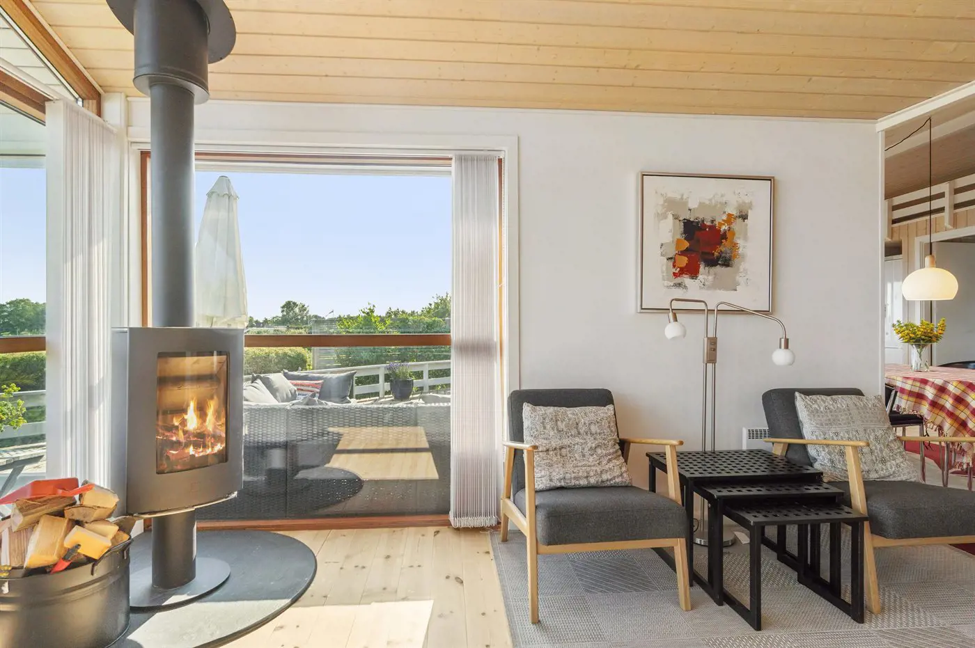 1 Smart-TV. Radio. Mindestens 4 dänische Fernsehsender. 1-3 schwedische Fernsehsender. 1-3 norwegische Fernsehsender. 1-3 deutsche Fernsehsender. 1-3 englische Fernsehsender. Es steht kabellose Internetverbindung zur Verfügung.