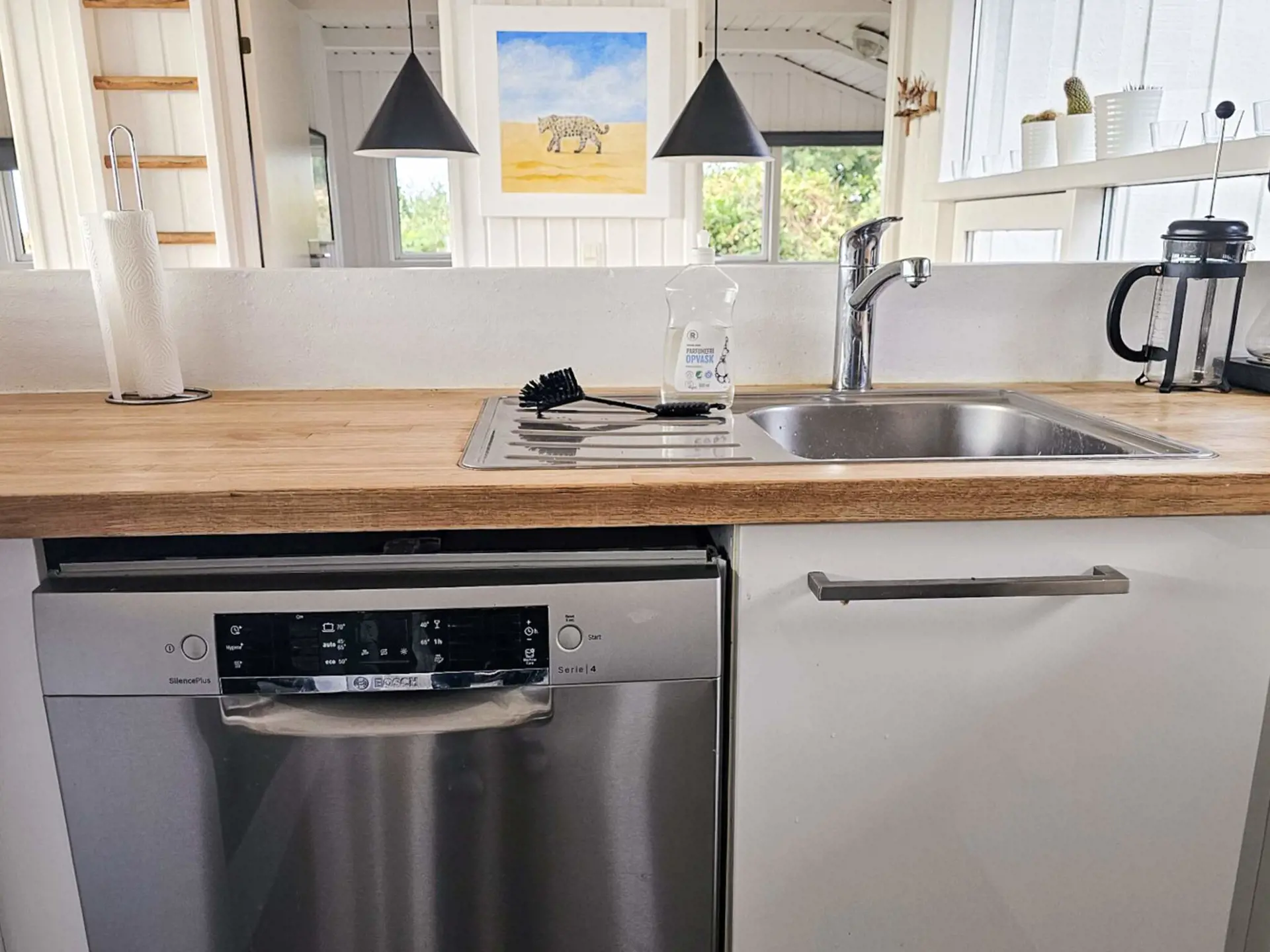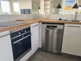Das Ferienhaus ist durch und durch funktional und gut eingerichtet mit einer großen und hellen Küche/Esszimmer, die offen mit dem Wohnzimmer verbunden ist. Hier ist viel Platz für gemeinsame Urlaubsmomente, und die Küche ist komplett mit allen notwendigen Haushaltsgeräten ausgestattet. Das Wohnzimmer ist mit einem Fernseher ausgestattet und lädt nach einem erlebnisreichen Tag zum Entspannen ein.