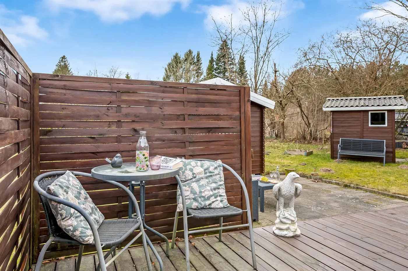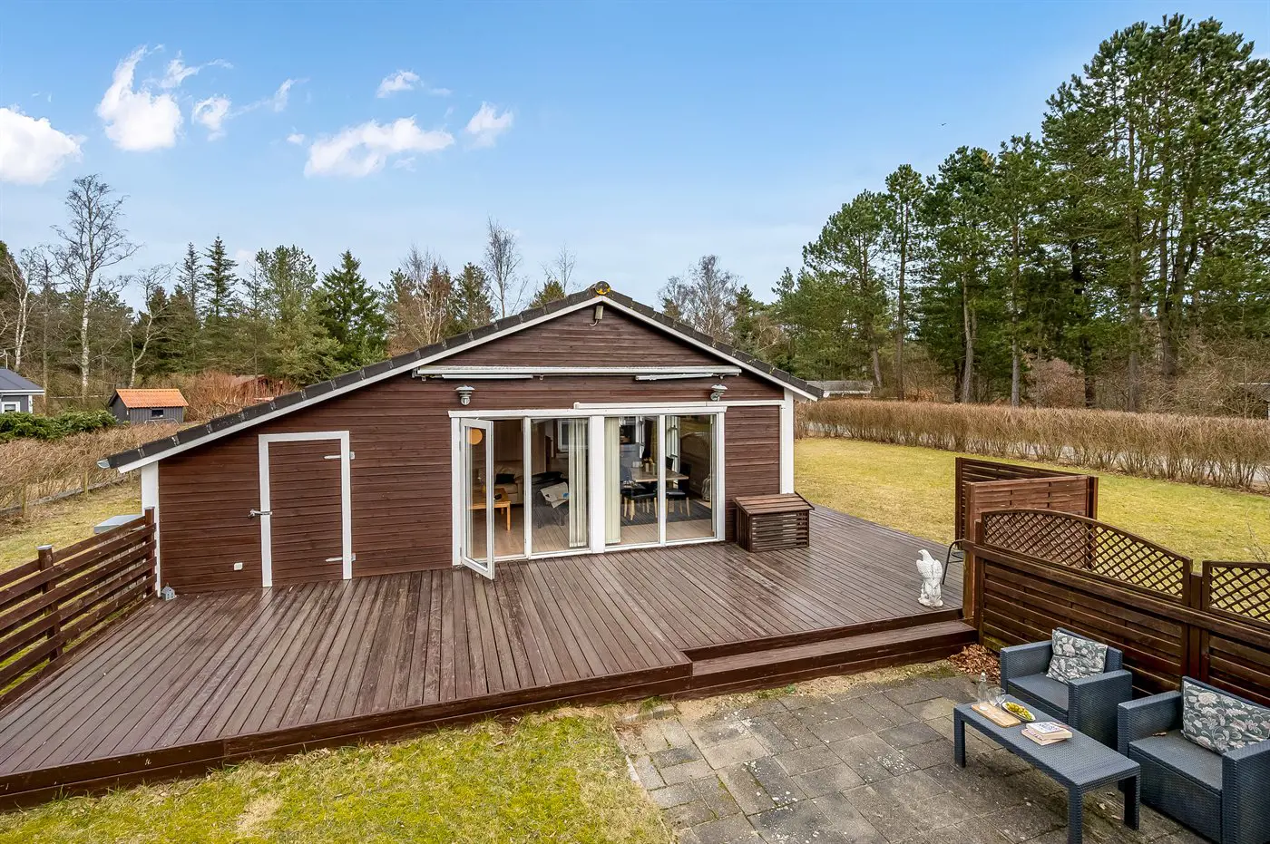 Die Ferienunterkunft liegt auf einem 1207 m² großen Naturgrundstück. Die Entfernung zum Meer beträgt 7500 m. Die Entfernung zu einem See beträgt 2500 m. Die nächste Einkaufsmöglichkeit liegt 3000 m entfernt. Es steht ein offenes Terrassenareal zur Verfügung. Trampolin. Es steht ein Grill zur Verfügung. Parkplatz auf dem Grundstück.