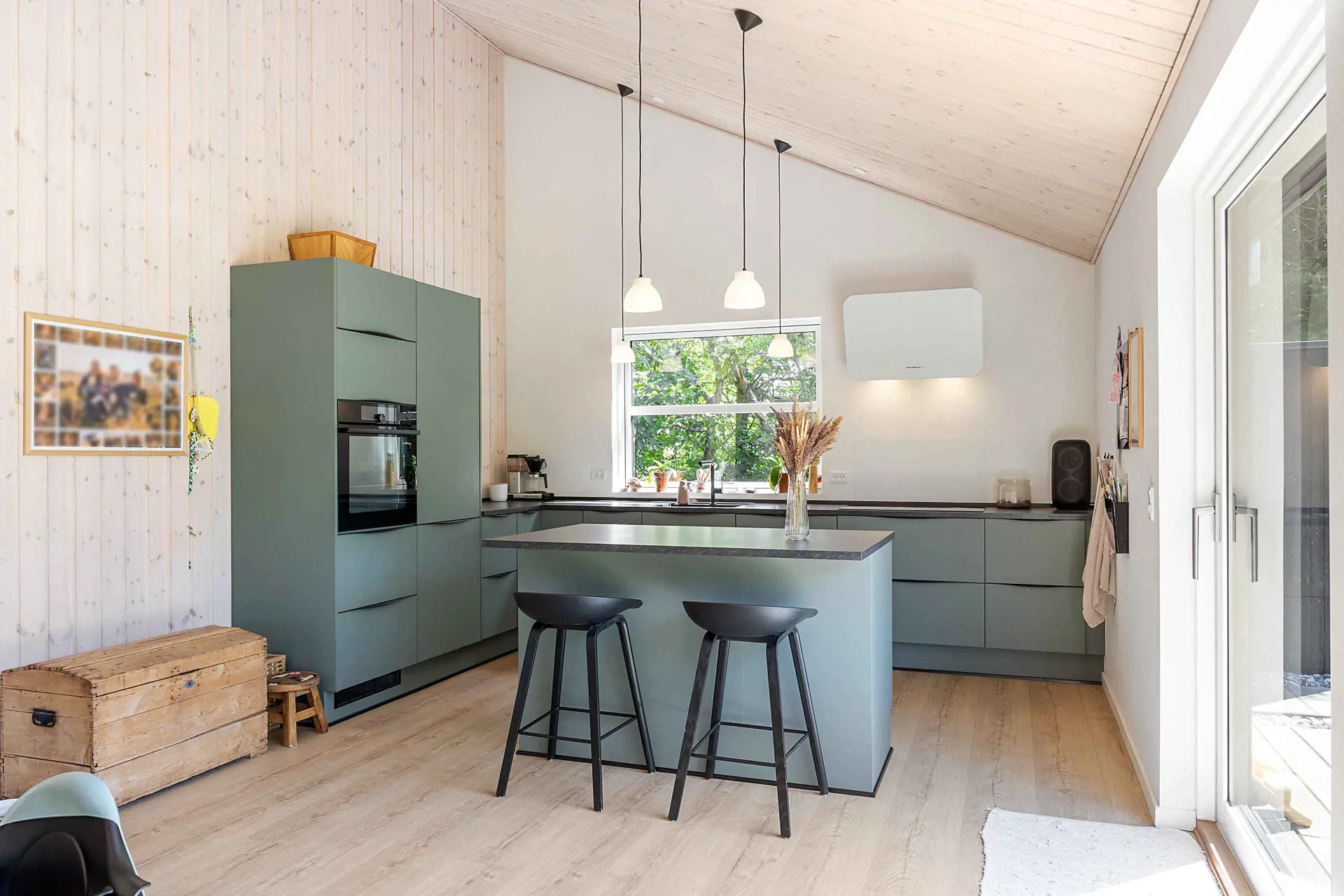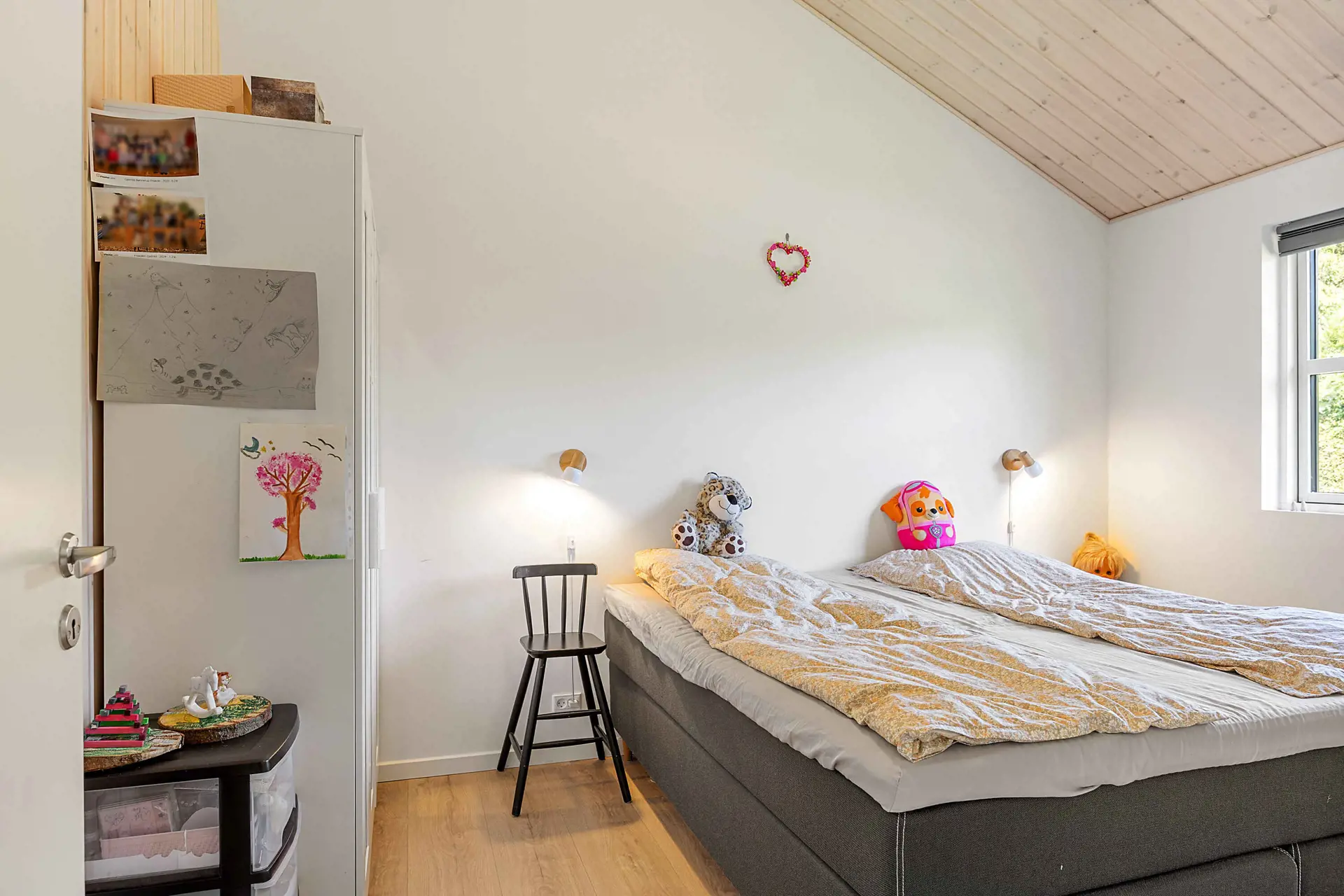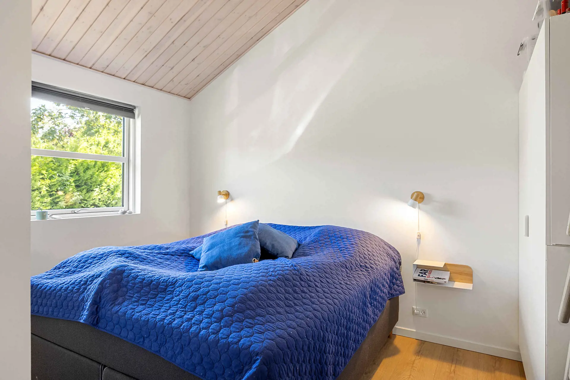 Es gibt drei schöne Schlafzimmer mit Doppelbetten sowie einen Dachboden, der als zusätzlicher Schlafplatz oder gemütliche Rückzugsecke genutzt werden kann. Zudem verfügt die Wohnküche über eine behagliche Alkove für Kinder und Erwachsene.