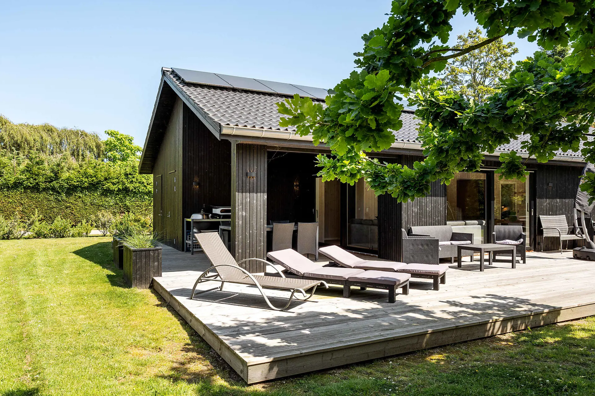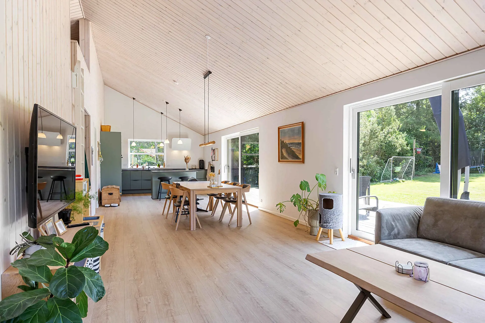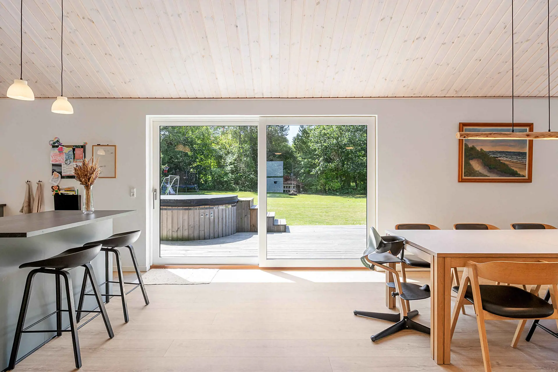 Es gibt drei schöne Schlafzimmer mit Doppelbetten sowie einen Dachboden, der als zusätzlicher Schlafplatz oder gemütliche Rückzugsecke genutzt werden kann. Zudem verfügt die Wohnküche über eine behagliche Alkove für Kinder und Erwachsene.