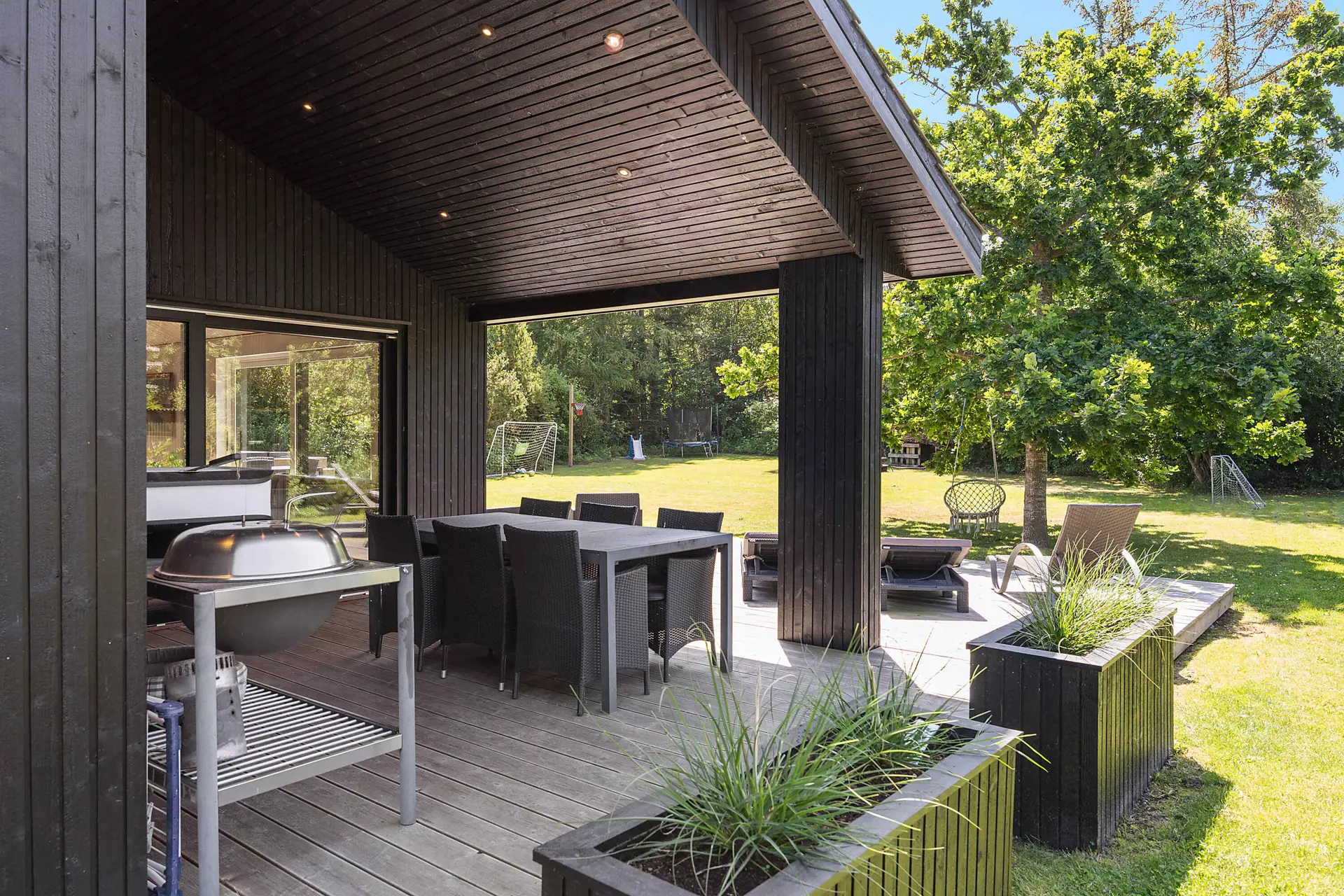 Der geschlossene Garten lädt zu Spiel und Ballspielen ein oder zur Entspannung im Hot Tub.