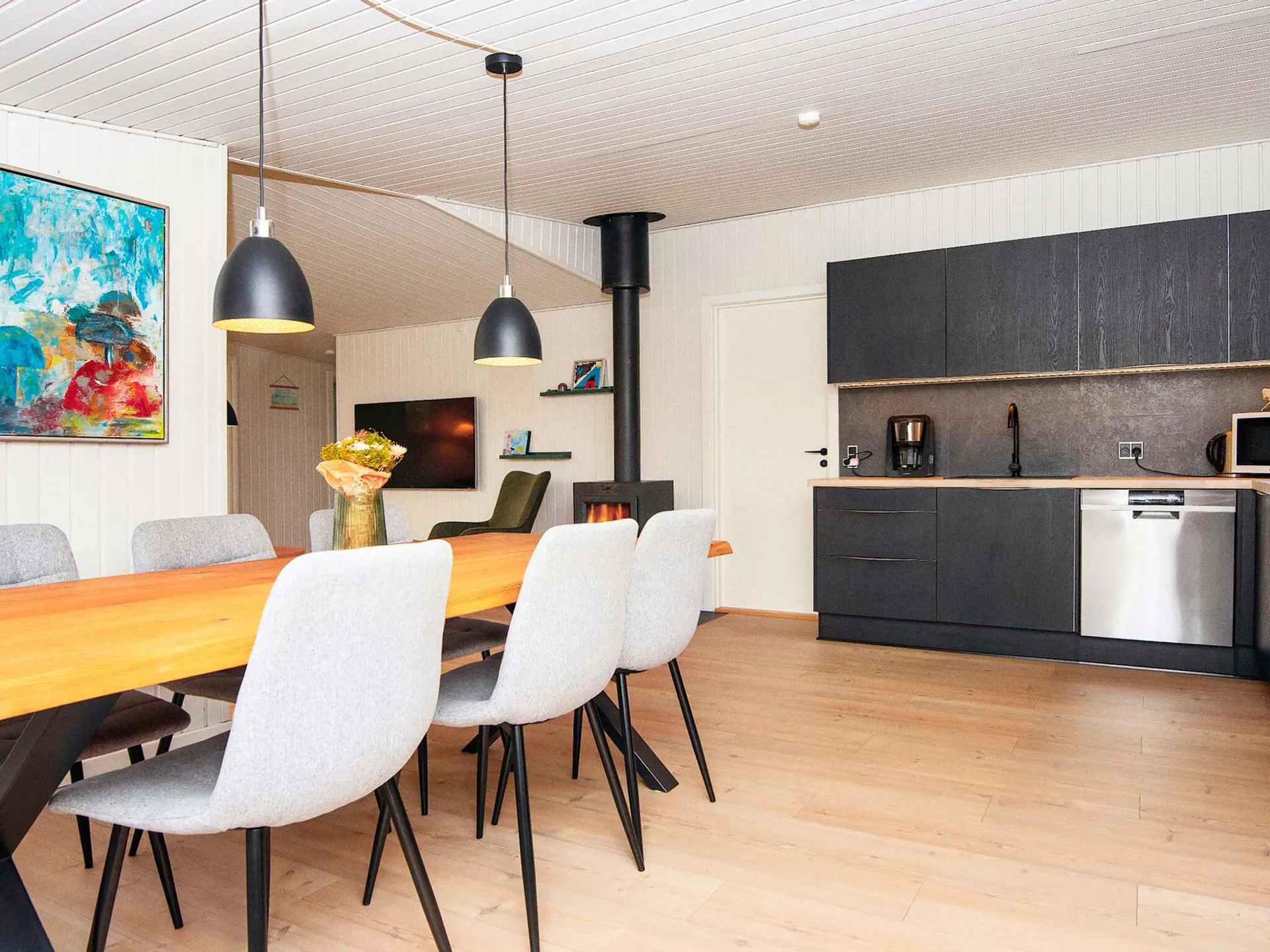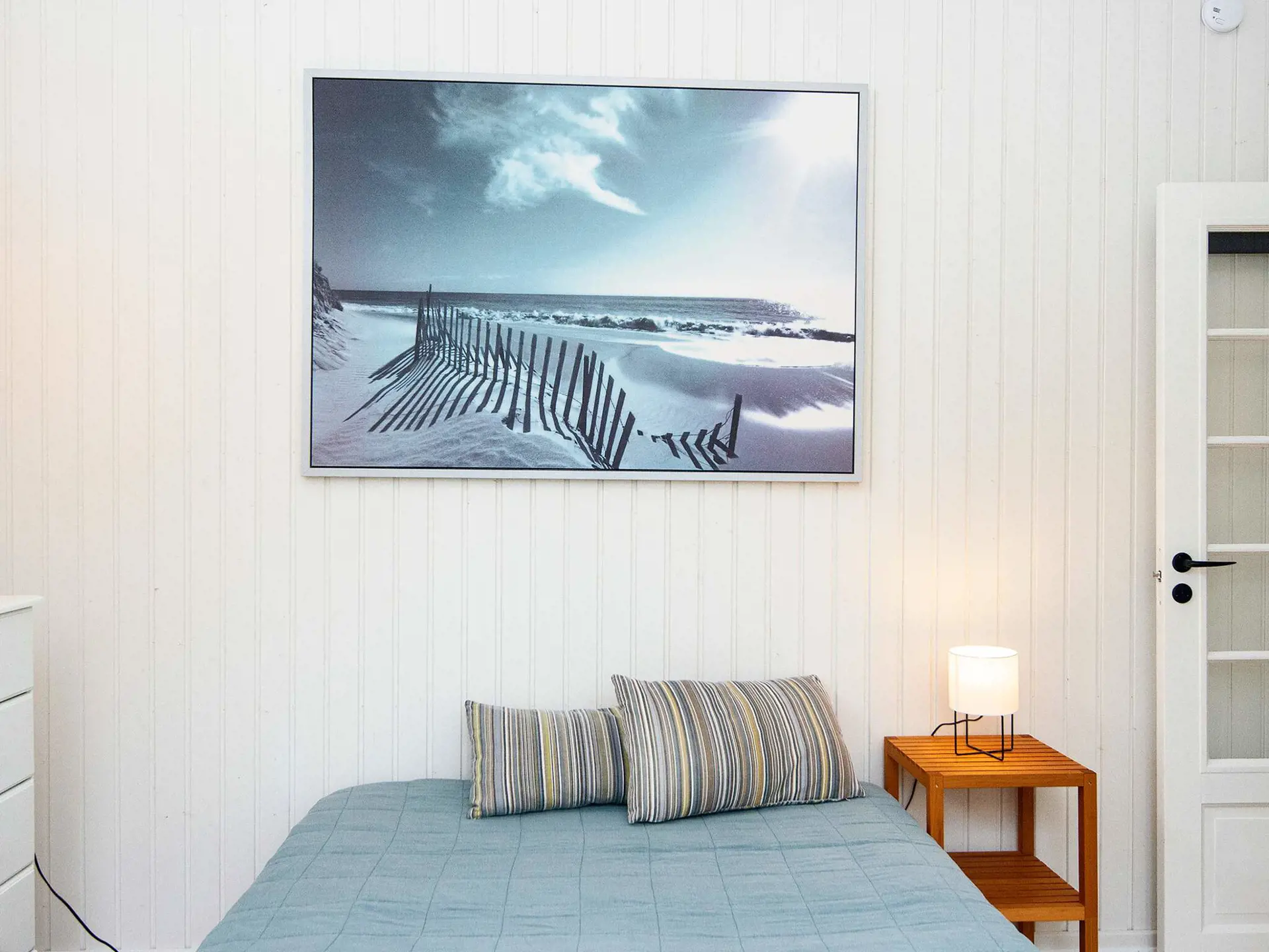 Im Inneren finden Sie einen hellen und geräumigen 32 Quadratmeter großen Küchen- und Essbereich, ideal zum Kochen und für gemütliche Stunden nach einem Tag am Meer. Ein gemütliches 20 Quadratmeter großes Wohnzimmer lädt zum Entspannen ein, egal ob Sie fernsehen oder Ihre Lieblingssendungen über das kostenlose WLAN streamen. Das Haus verfügt über drei Schlafzimmer und ein gut ausgestattetes Badezimmer mit Dusche und bietet alles, was Sie für einen komfortablen Aufenthalt benötigen.