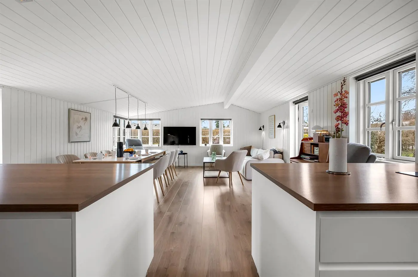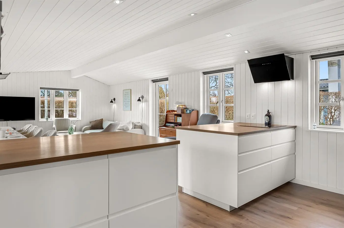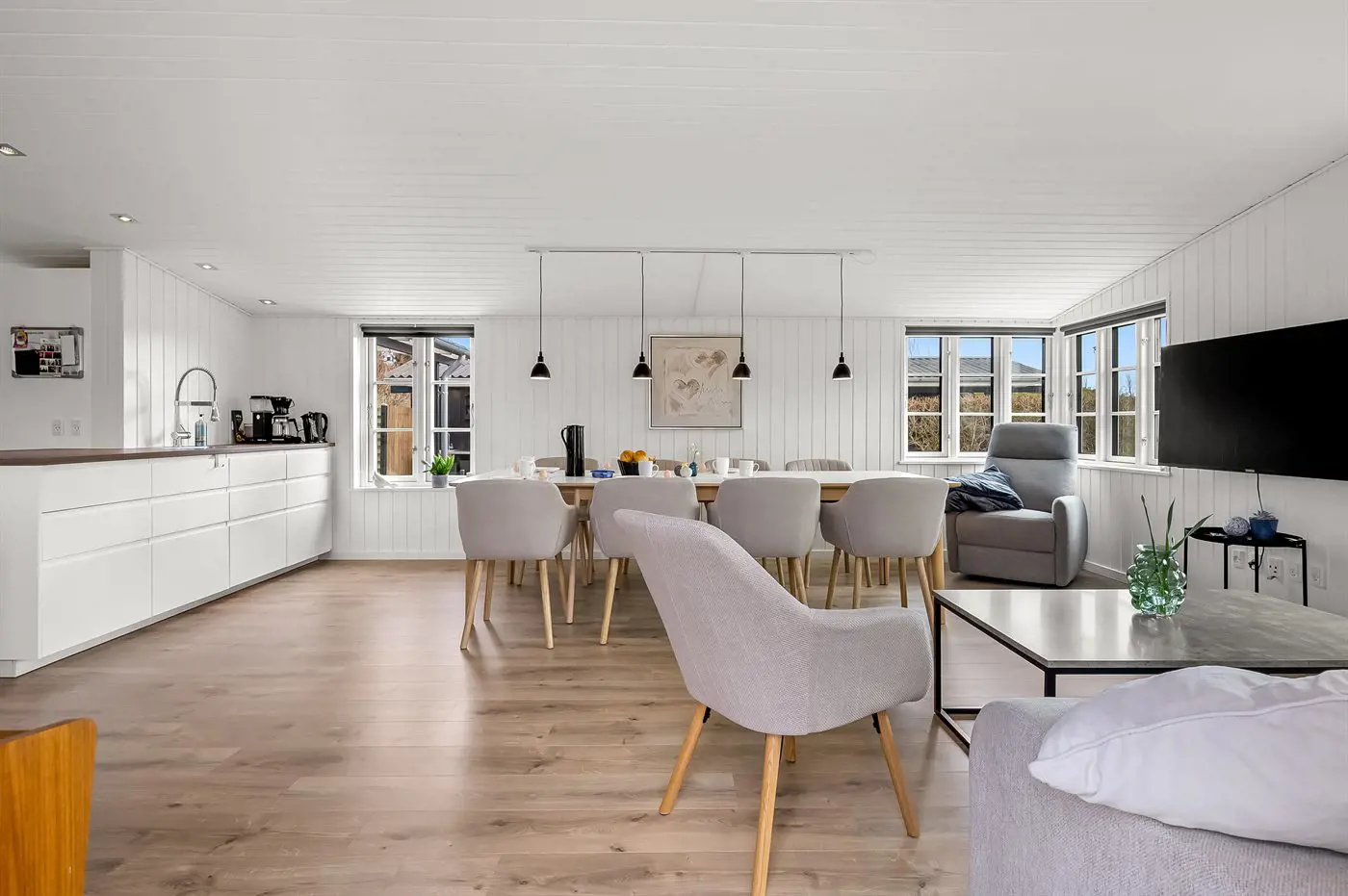 1 Smart-TV. Radio. Mindestens 4 dänische Fernsehsender. 1-3 schwedische Fernsehsender. 1-3 norwegische Fernsehsender. 1-3 deutsche Fernsehsender. Es steht kabellose Internetverbindung zur Verfügung.
