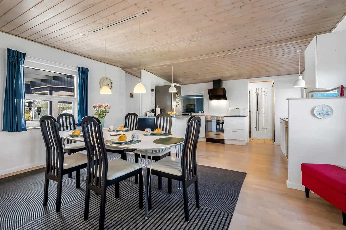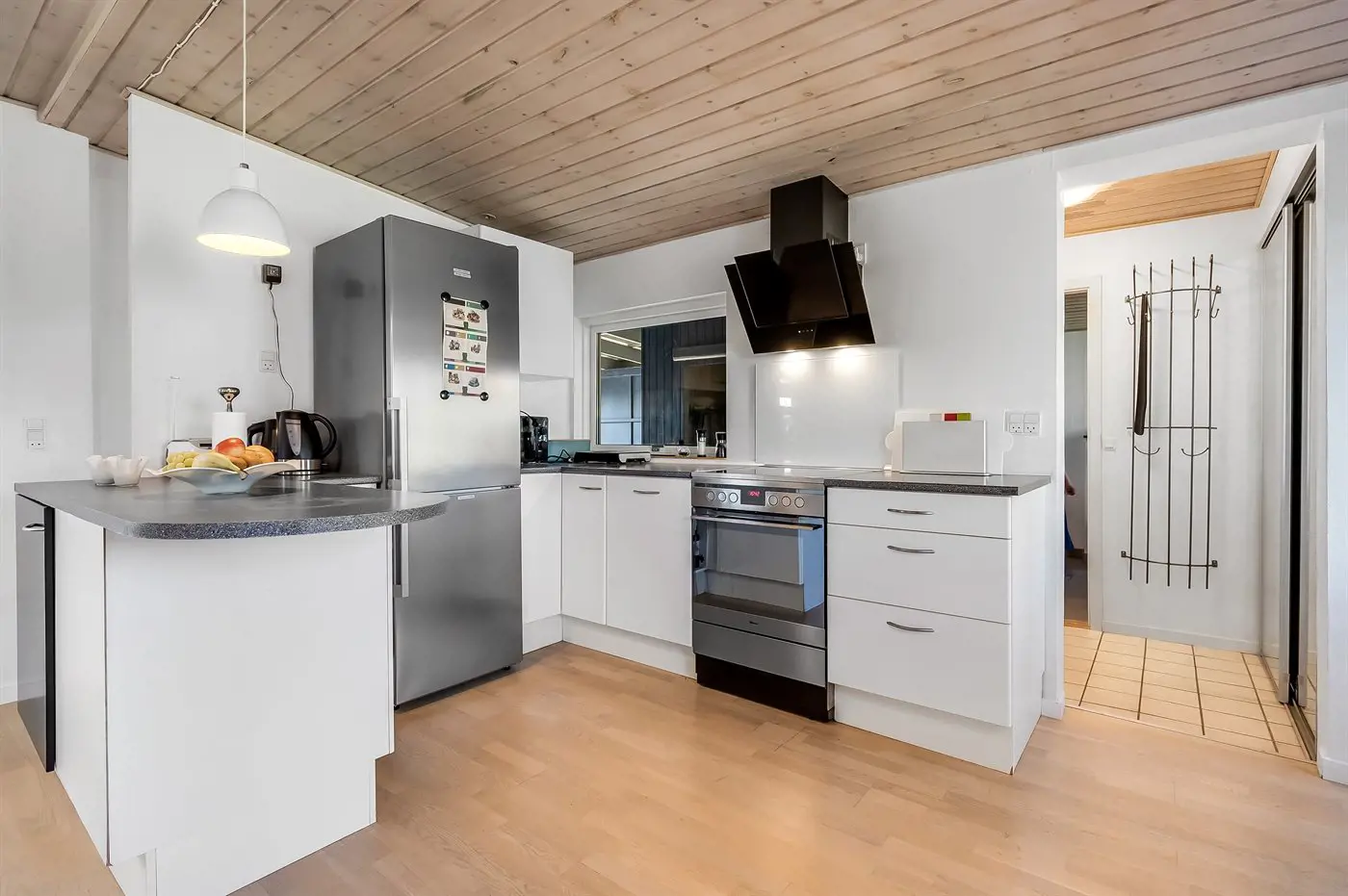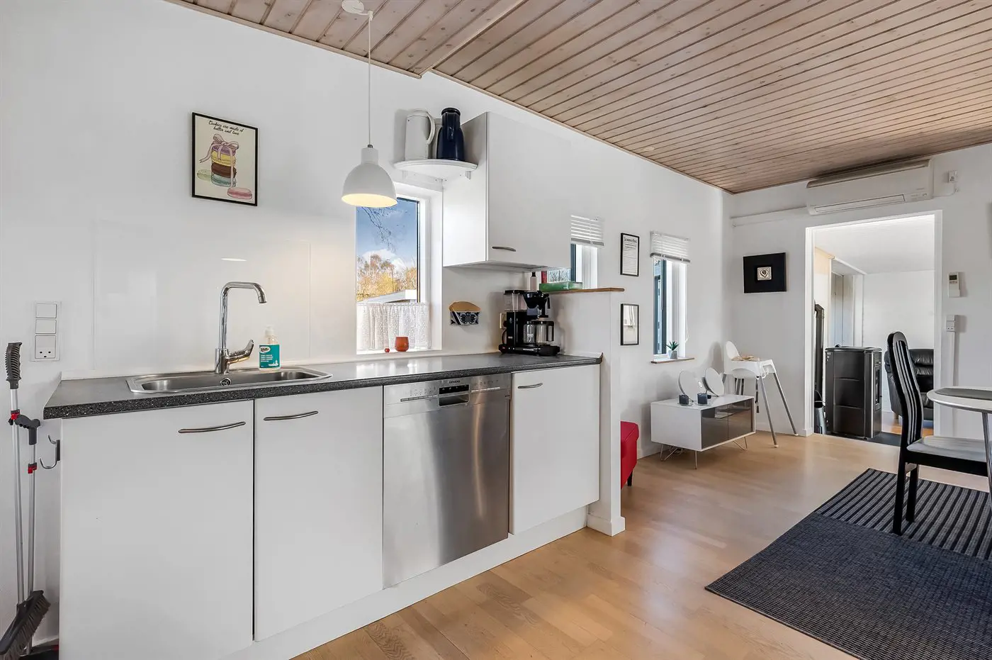 Das Ferienhaus präsentiert sich in einem gepflegten Zustand, hell und modern eingerichtet. Der Mittelpunkt des Hauses ist die große Wohnküche - ein idealer Ort, an dem du mit deiner Familie zusammenkommen und gemütliche Stunden verbringen kannst. Von hier aus hast du auch direkten Zugang zu den schönen Terrassen. Mit einer Wohnfläche von 105 m² bietet das Haus viel Platz, zum Beispiel für eine Familie mit 2–3 Kindern oder sogar für zwei kleinere Familien, die ihren Urlaub in dieser schönen Umgebung genießen möchten. Zwei der Schlafplätze befinden sich in einem gemütlichen Gästehaus, der sich besonders gut für größere Kinder eignet.