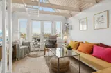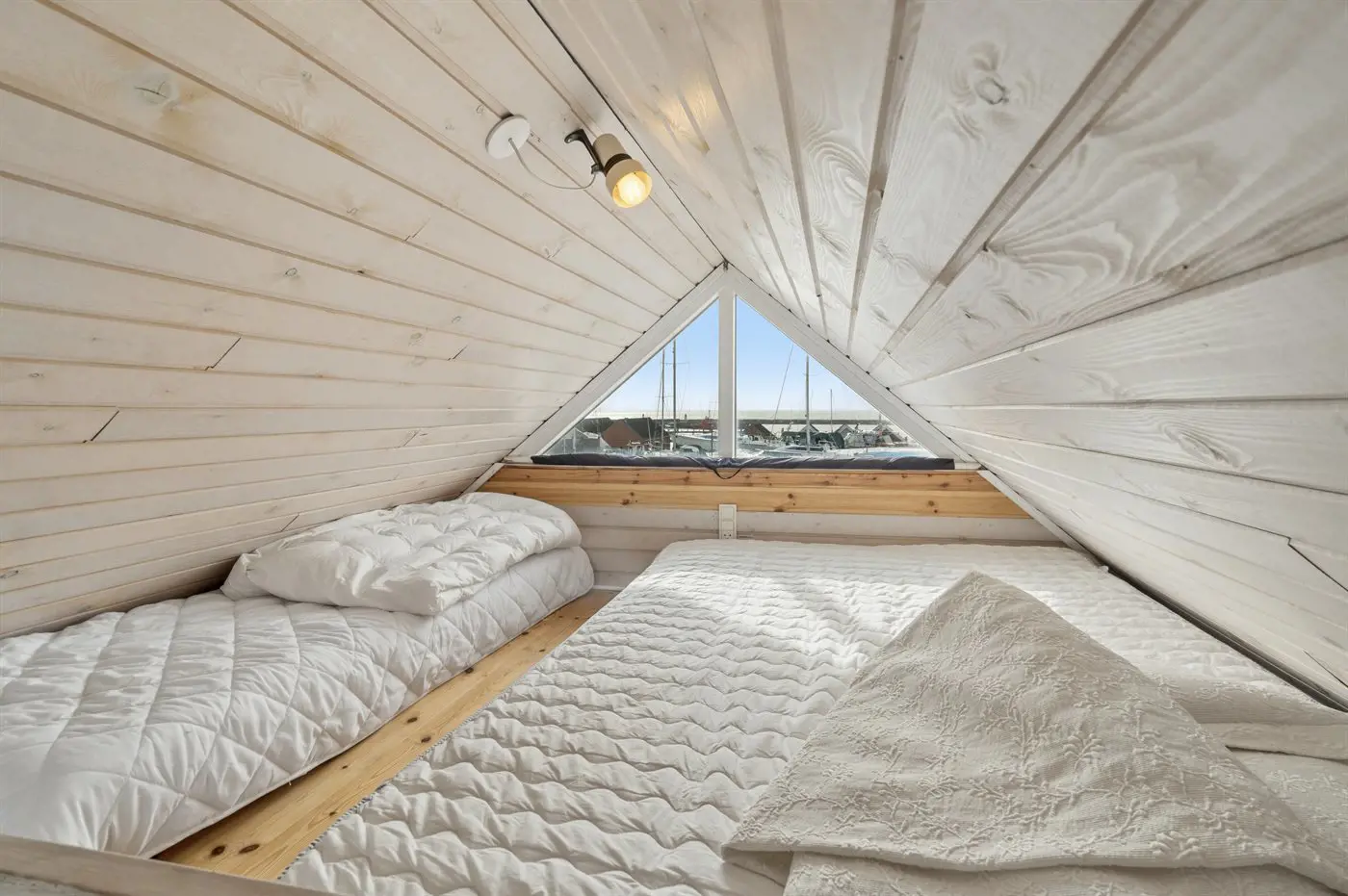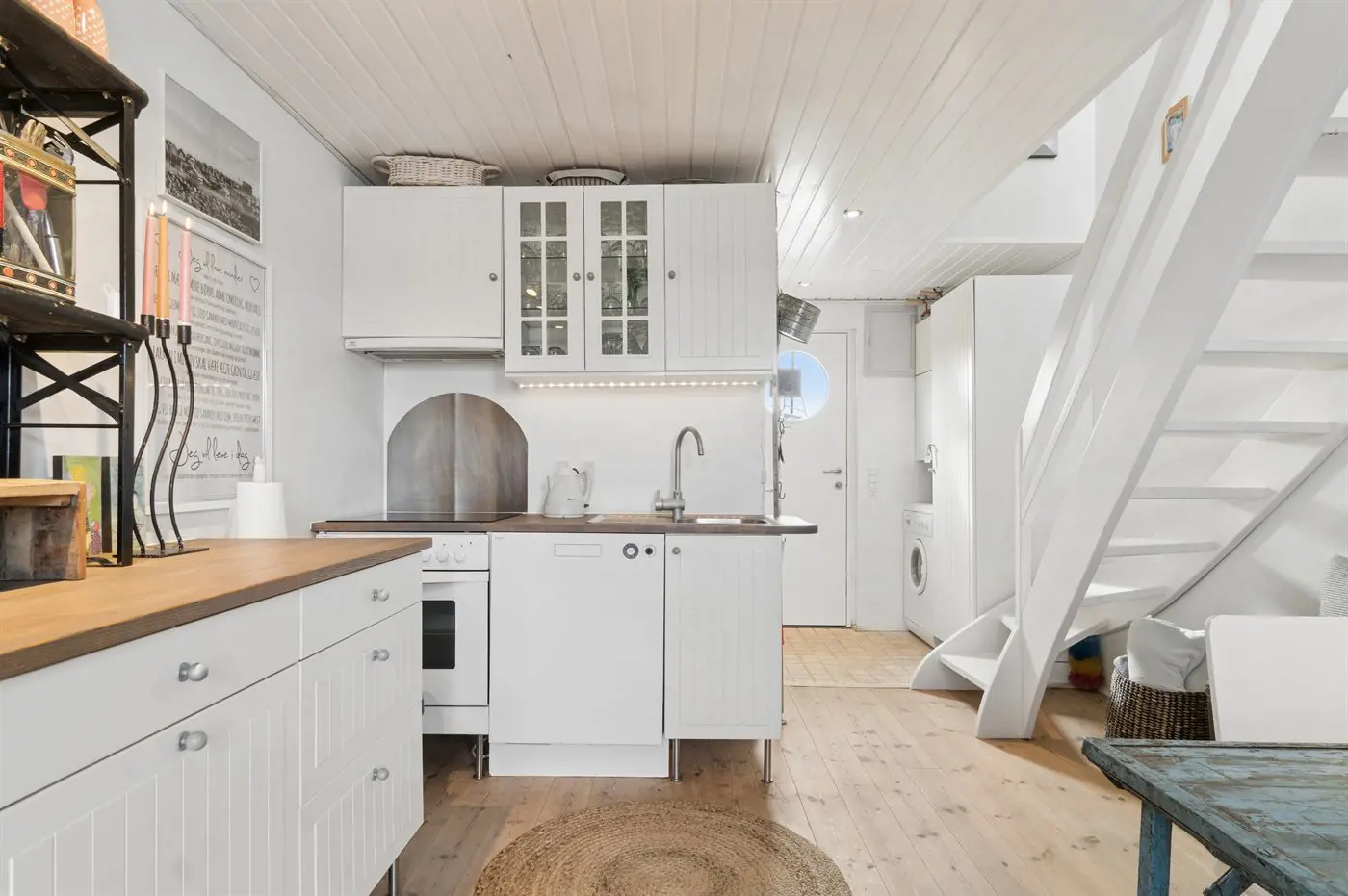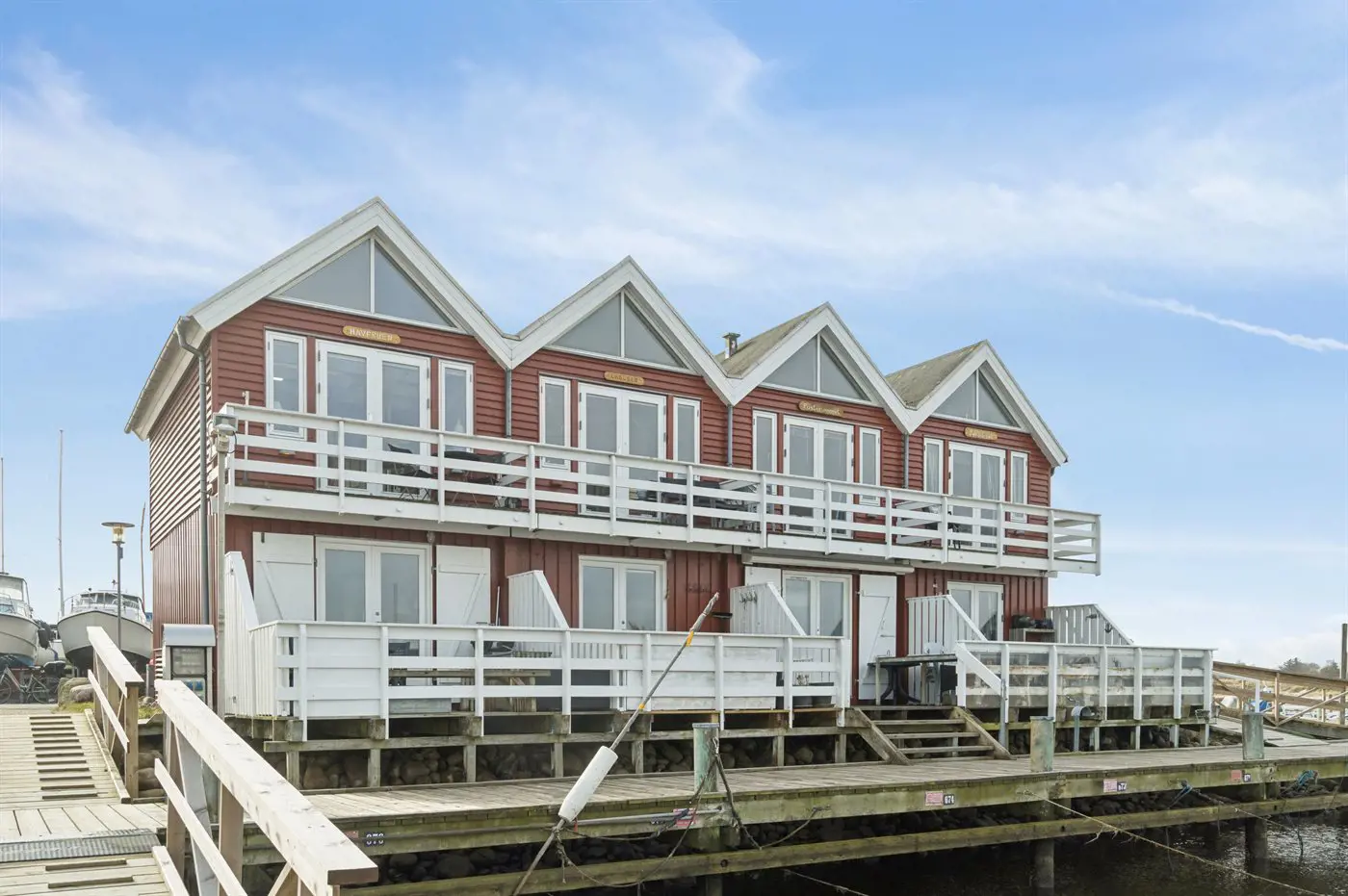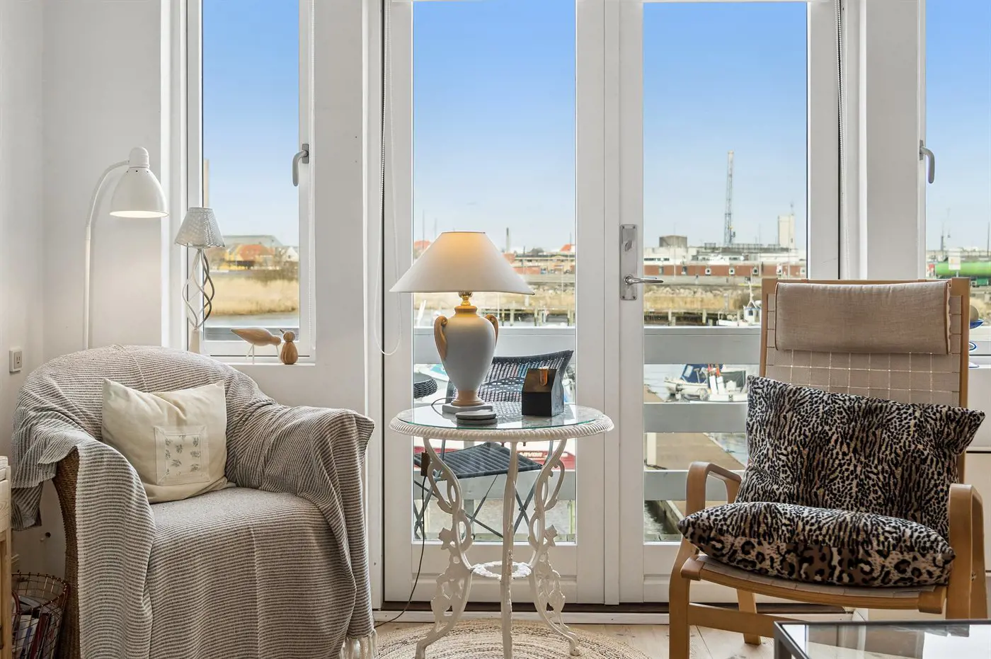 Freie Terrasse mit Blick über den Yachthafen. Gemütlich und charmant eingerichtet mit einer gut ausgestatteten Küche im Erdgeschoss sowie einem warmen und hellen Wohnzimmer im Obergeschoss.