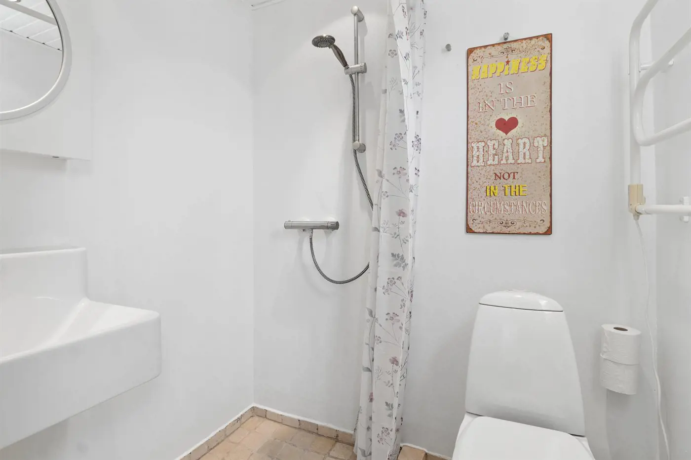 Es gibt 1 Badezimmer mit Duschnische und 1 Toilette.. Fußbodenheizung in 1 Badezimmer.