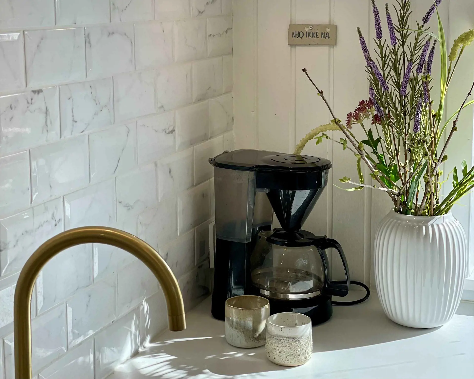 Küche und Bad präsentieren sich in hellen Materialien mit schönen Details, kombiniert mit stilvollen Fliesen.