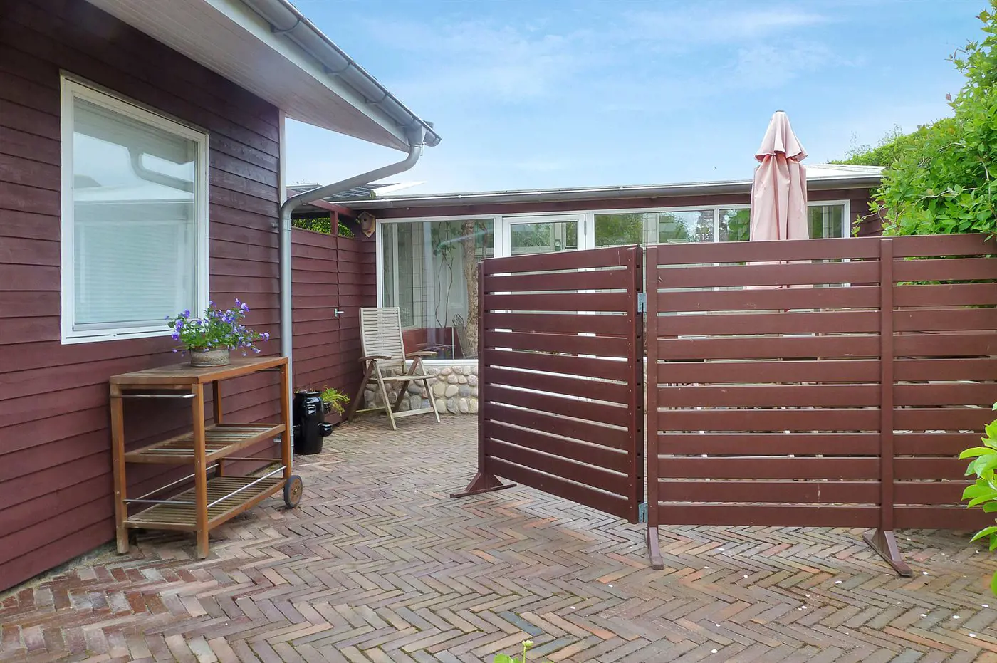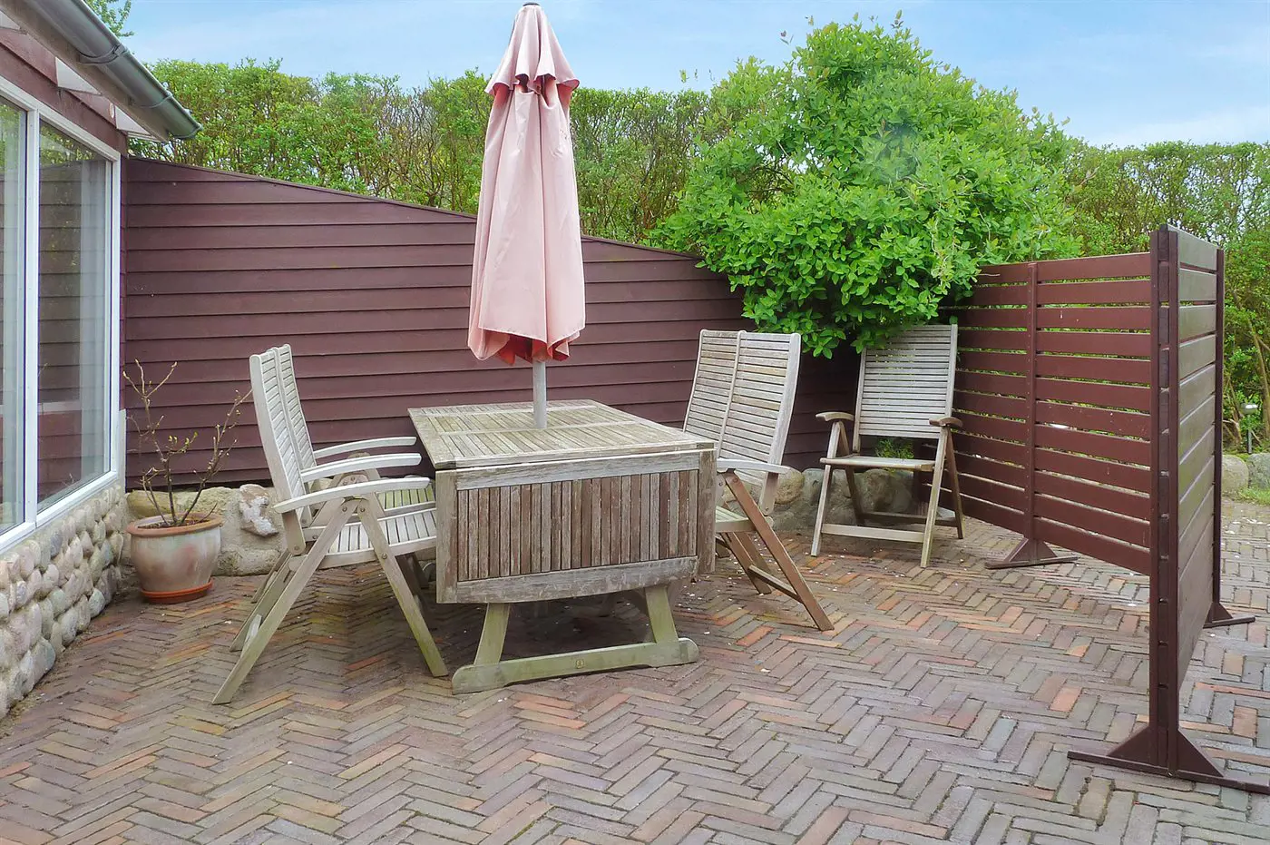 Es gibt eine schöne Terrasse, die zu vielen Stunden im Freien einlädt – hier findet ihr immer eine windgeschützte Ecke, um die angenehme Umgebung in vollen Zügen und völlig ungestört zu genießen.