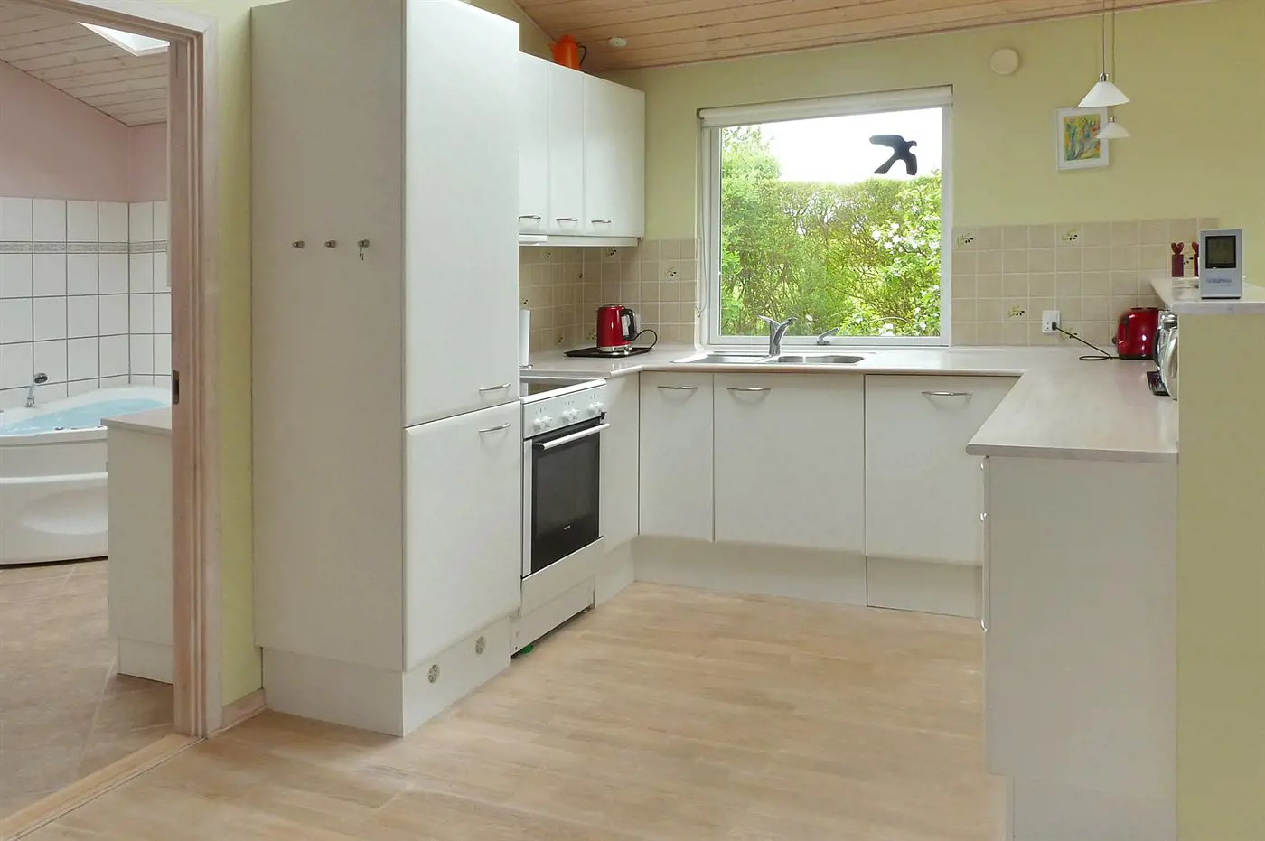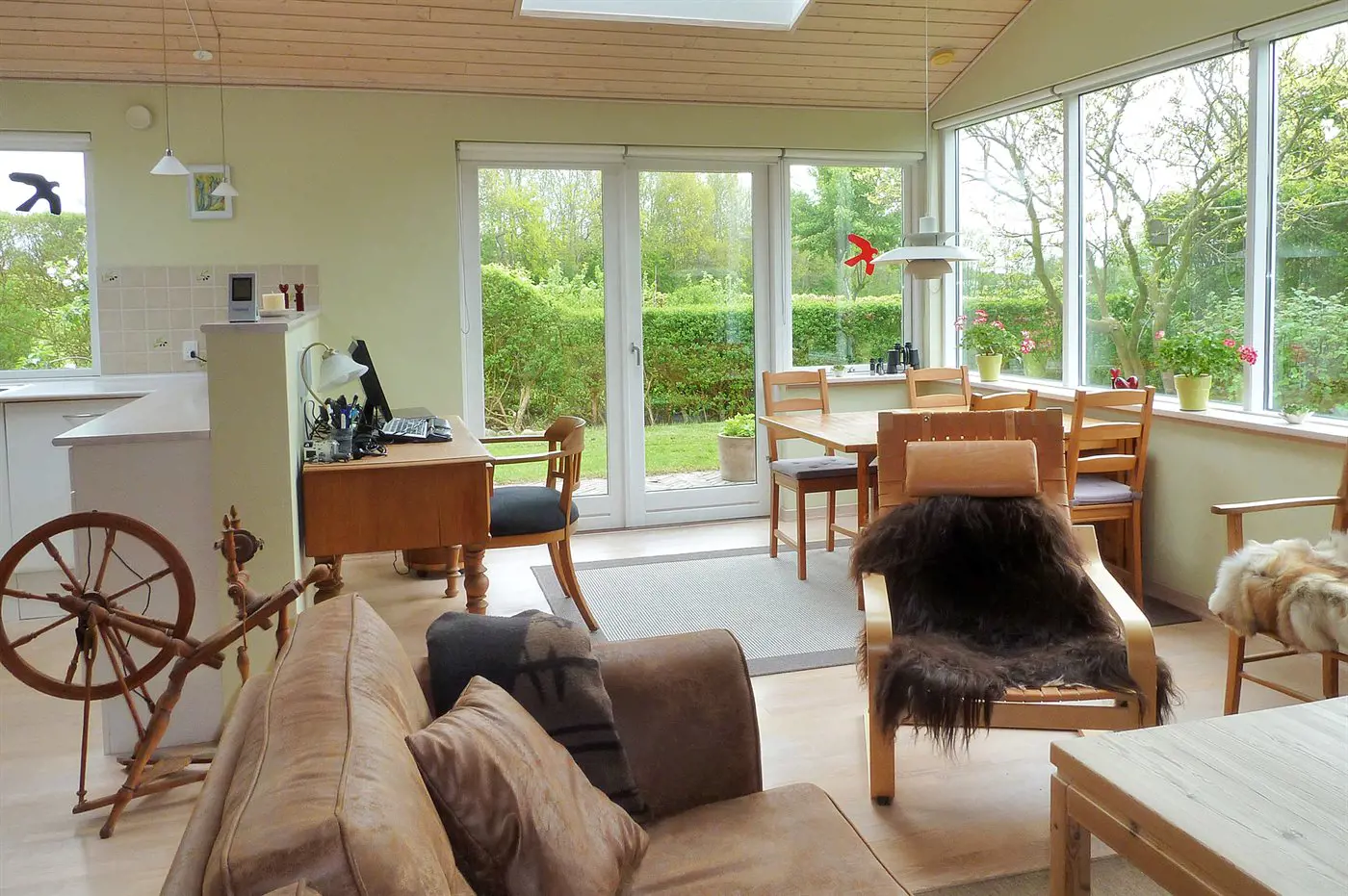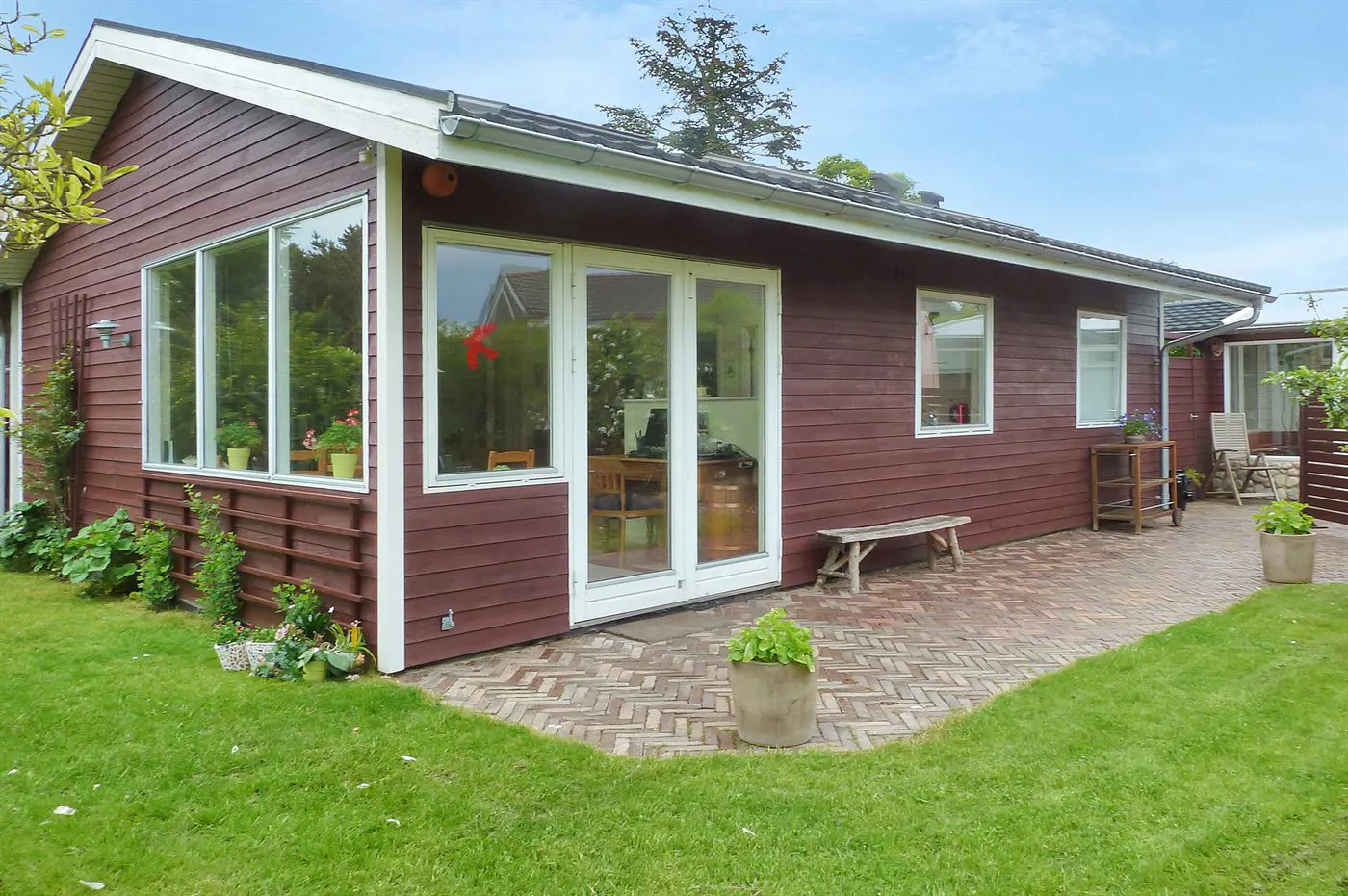 Das Ferienhaus ist gut eingerichtet und eignet sich hervorragend für beispielsweise eine Familie mit 2–3 Kindern. Es bietet auch die Möglichkeit, die Großeltern mitzunehmen. Der Mittelpunkt des Hauses ist die gemütliche Wohnküche, von der aus ihr direkten Zugang zur Terrasse habt.