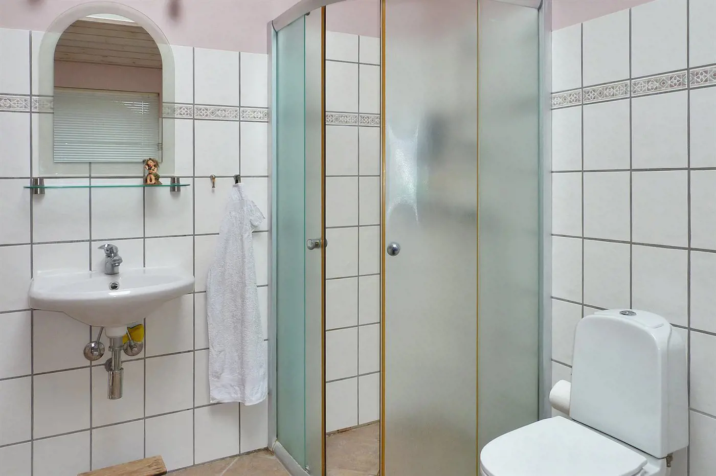 Es gibt 1 Badezimmer mit Duschnische und 2 Toiletten, davon 1 Gästetoilette. Fußbodenheizung in 1 Badezimmer.