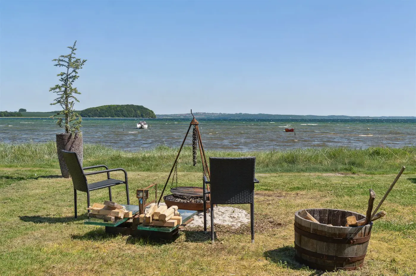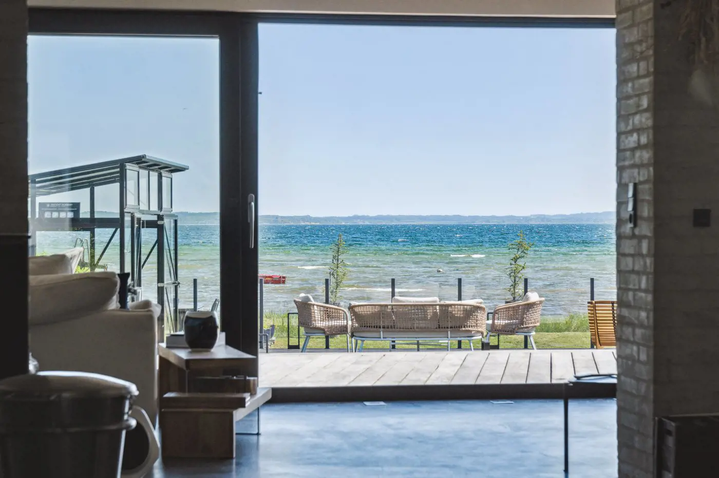 Die Renovierung des Hauses wurde bis ins kleinste Detail durchgeführt, vom schönen Betonboden über die exklusive Küche bis hin zum einzigartigen Badezimmer im ersten Stock, das sich direkt an das Hauptschlafzimmer der Villa anschließt und natürlich ebenfalls einen hervorragenden Ausblick bietet. Mit anderen Worten, diese feine Villa bietet den Rahmen für einen perfekten und exklusiven Urlaub direkt am Wasser. Es ist auch erwähnenswert, dass Aarhus und viele der Attraktionen in Ostjütland in etwa 30-60 Minuten mit dem Auto zu erreichen sind.