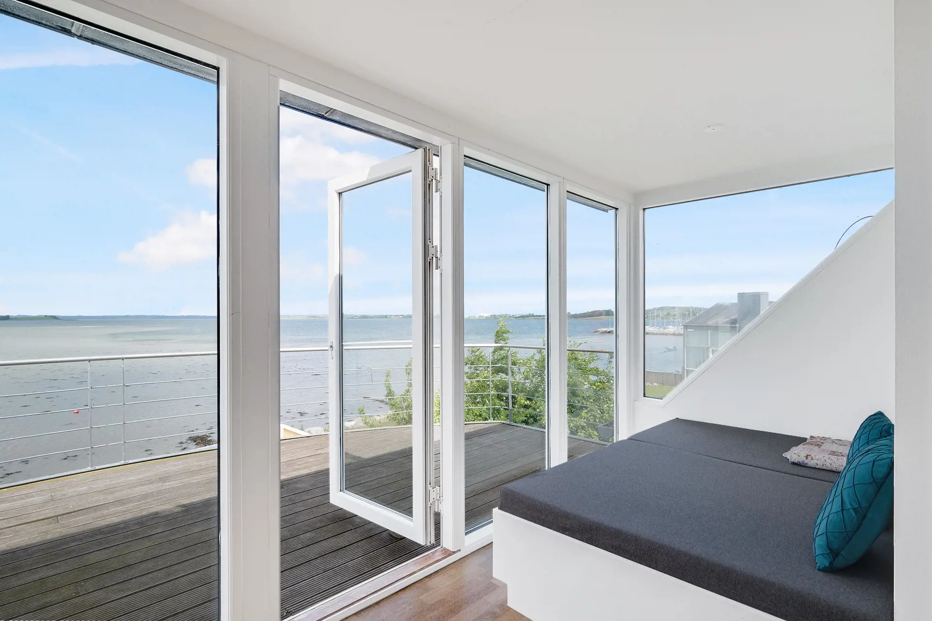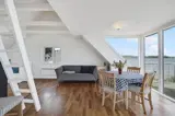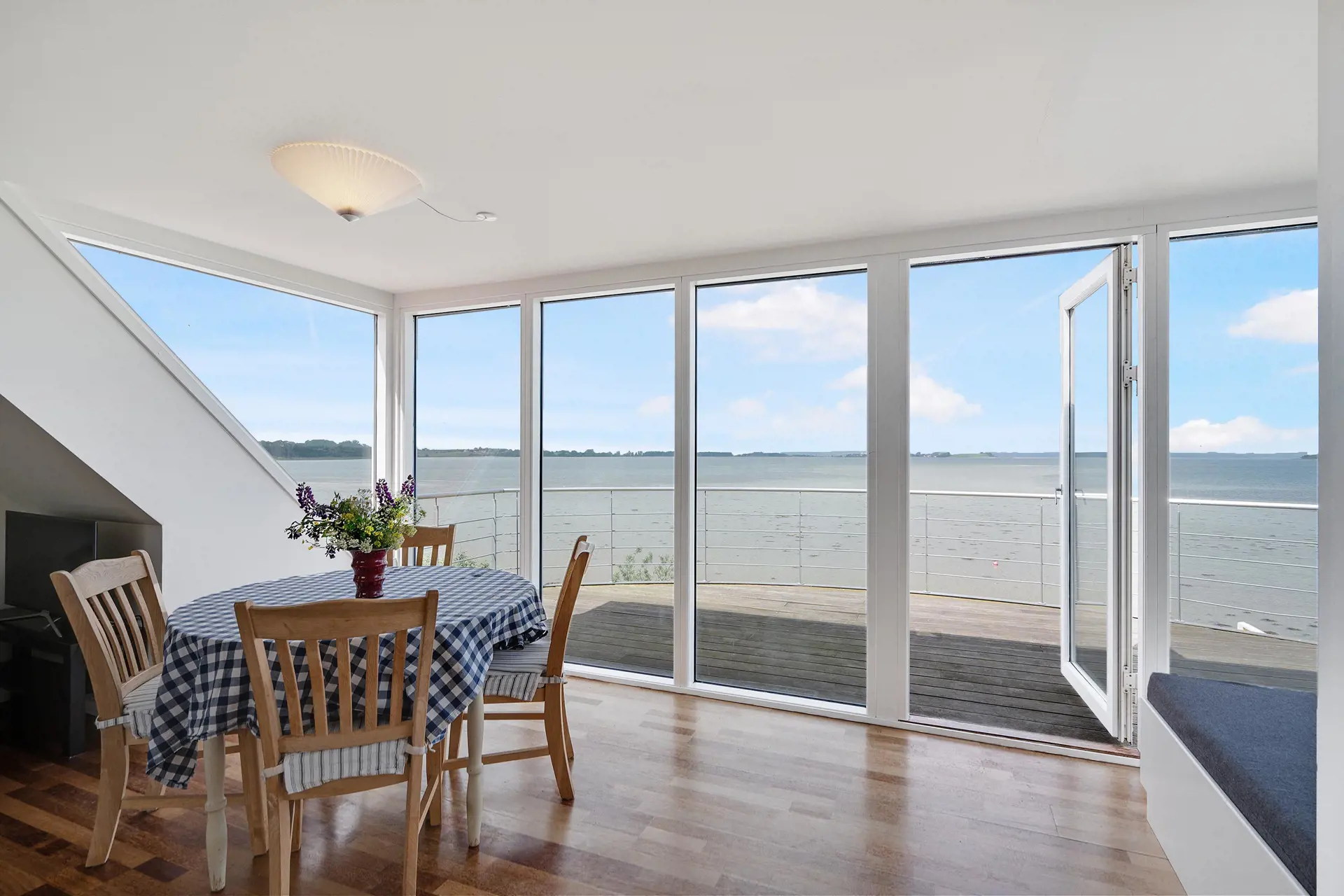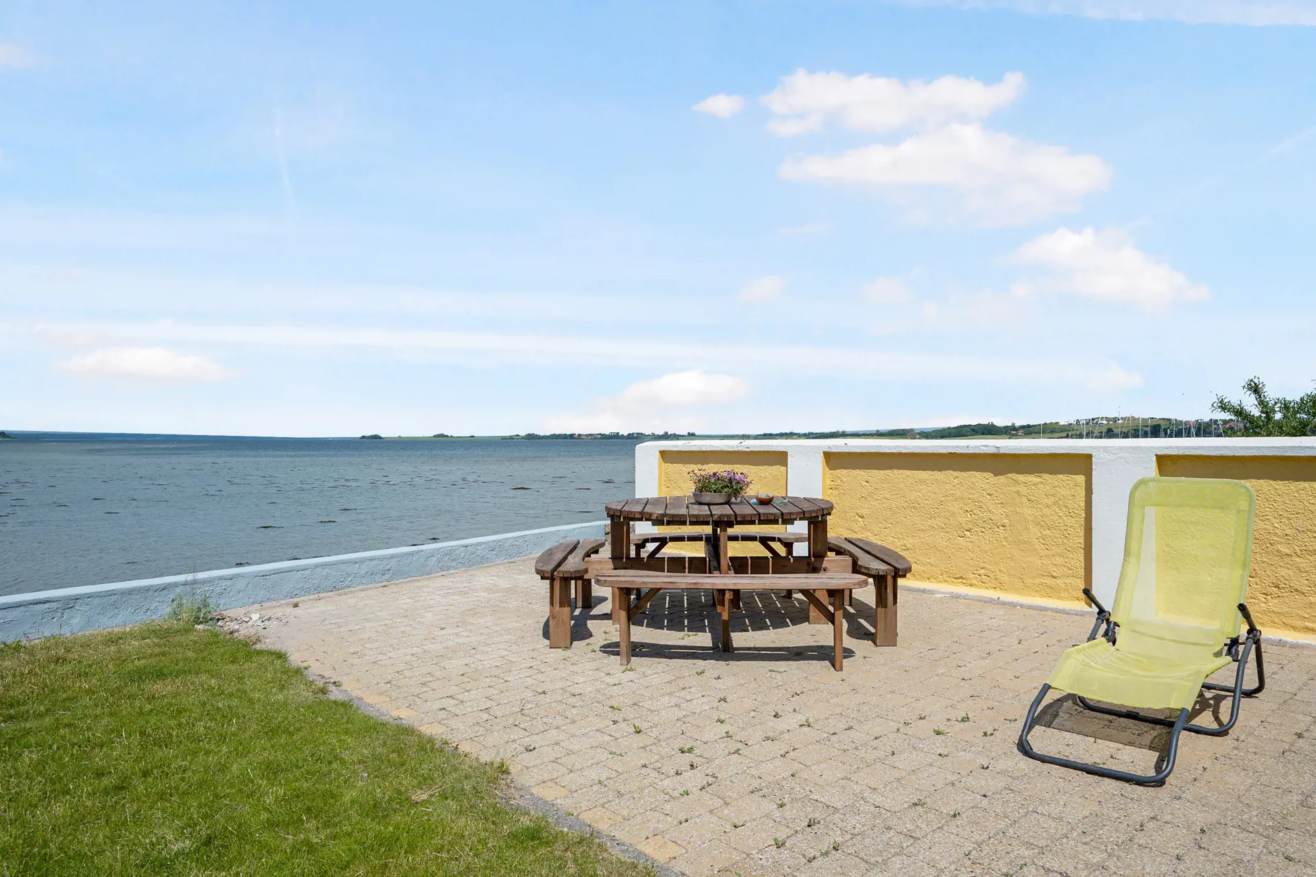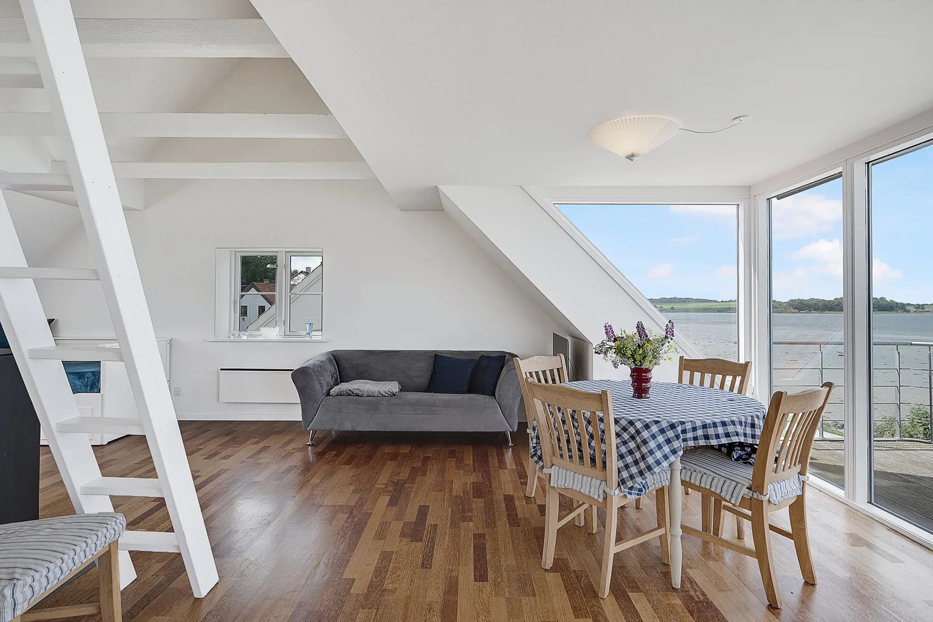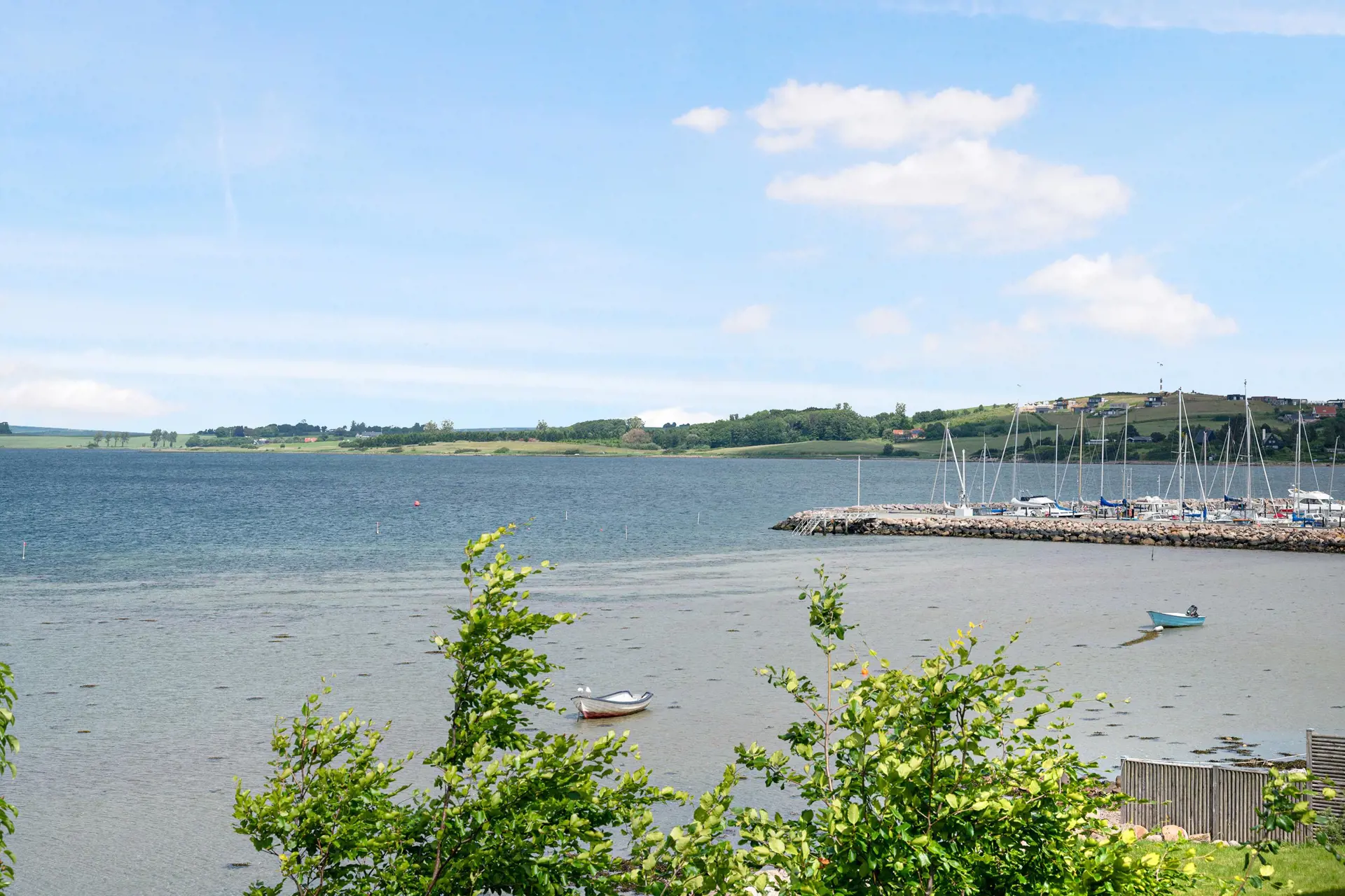 Nur einen Steinwurf vom Wasser entfernt liegt diese gemütliche und frisch renovierte Ferienwohnung im 1. Stock. Helles und behaglich eingerichtetes Wohnzimmer mit Ausgang auf eine große Terrasse. Von der Terrasse aus hat man Aussicht auf Mols und kann den Sonnenuntergang über dem Gebiet genießen. In offener Verbindung zum Wohnzimmer liegt die schicke Küche, die u. a. mit Geschirrspüler ausgestattet ist. Die fünf Schlafplätze verteilen sich auf ein Schlafzimmer mit Doppelbett, einen Alkoven in Wohnzimmer und ein Schlafsofa. Alternativ kann der über eine gute Leiter erreichbare Hängeboden als Schlafplatz genutzt werden. Schönes Badezimmer mit Dusche. Das Haus ist mit Internet ausgestattet und man darf gerne einen Hund mitbringen.