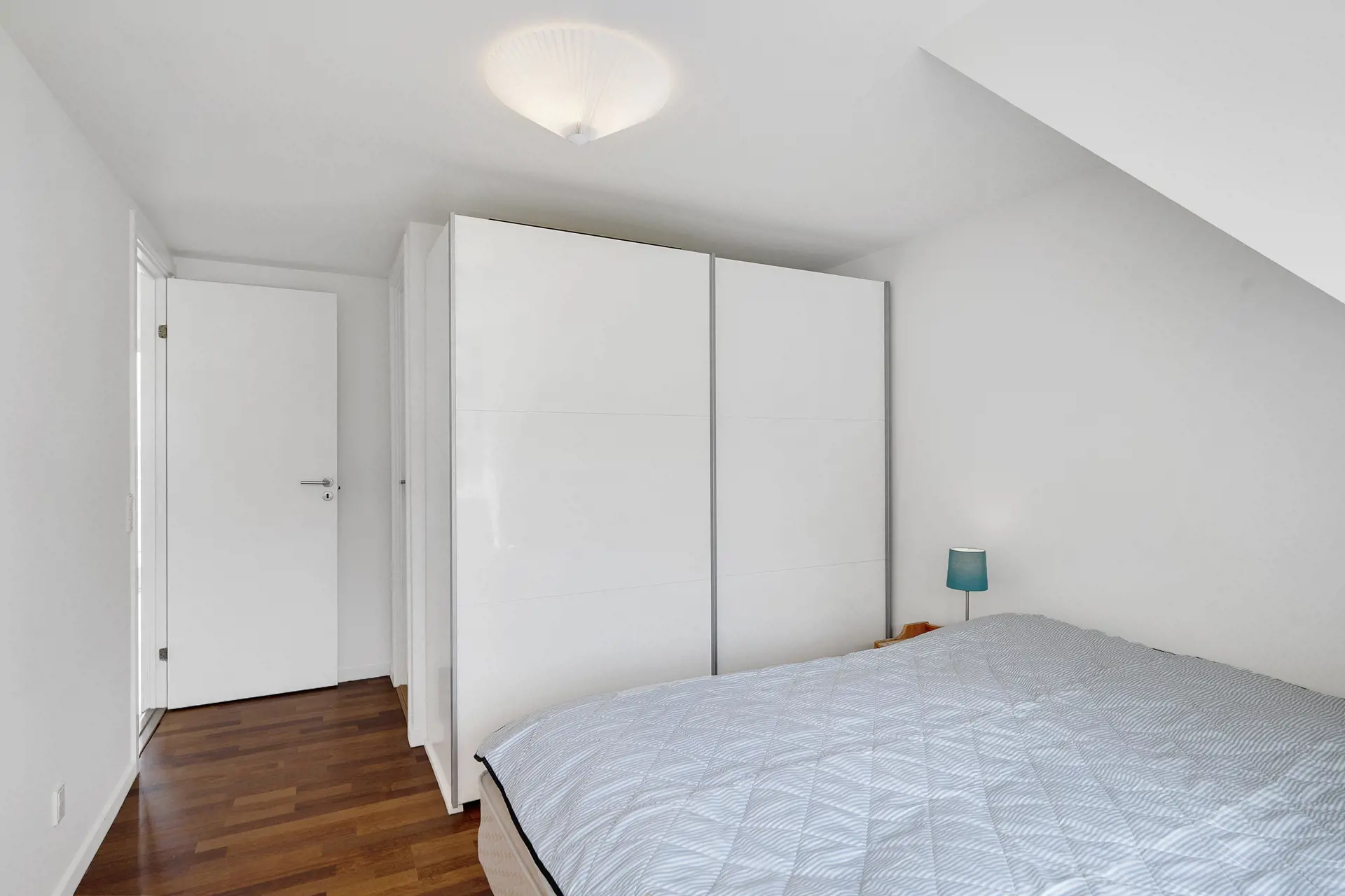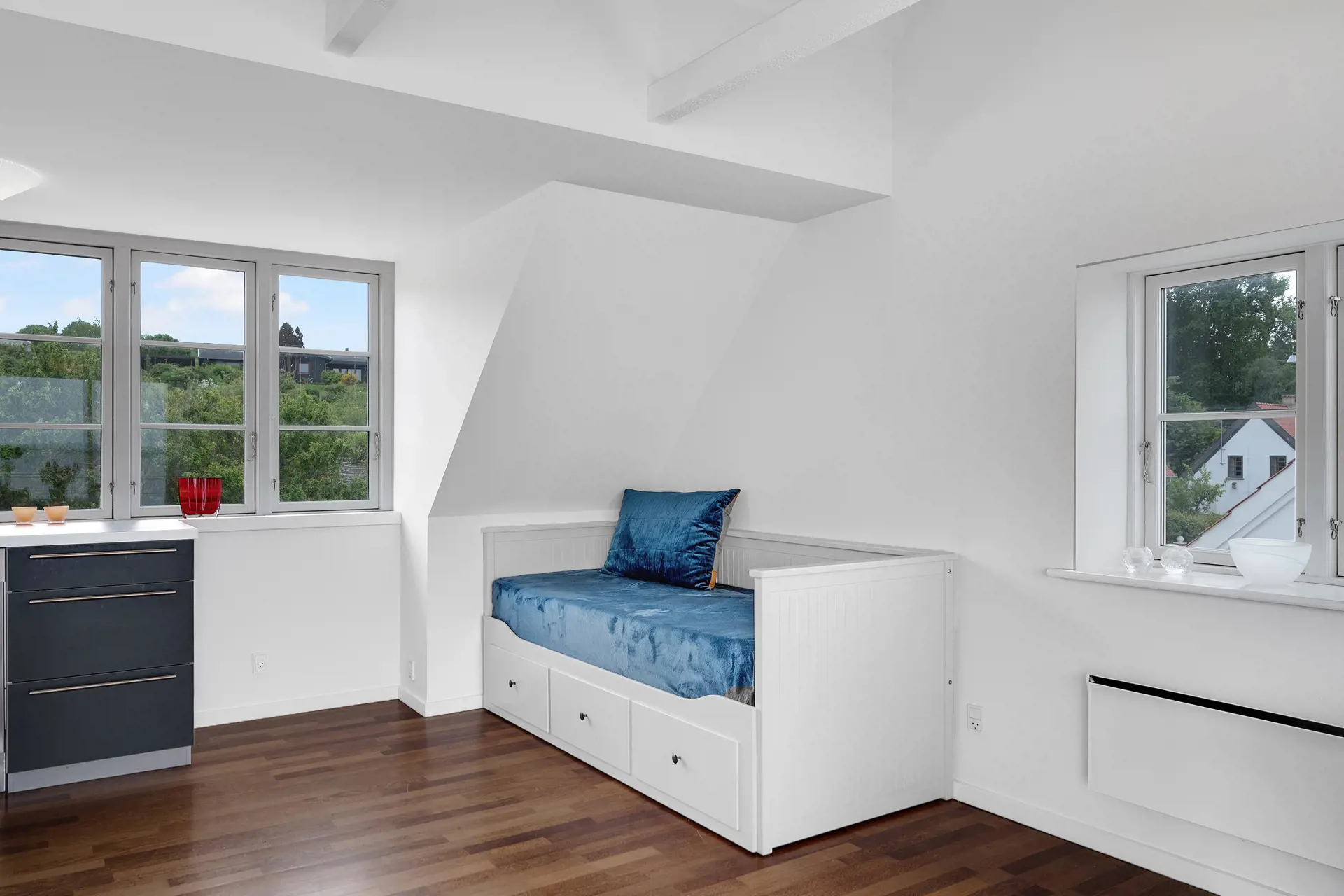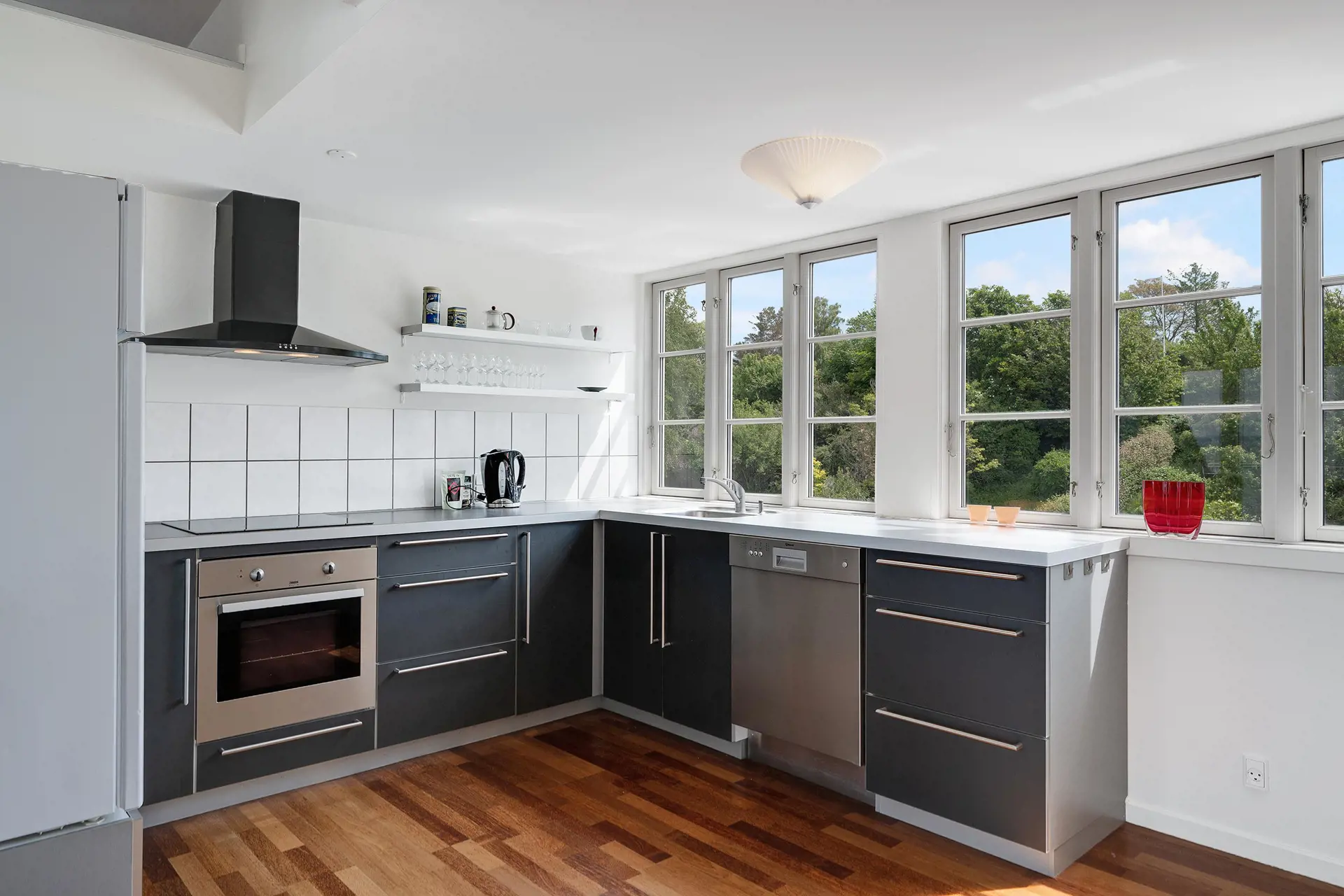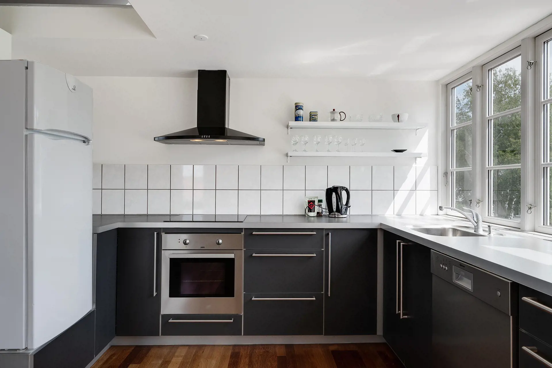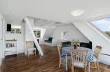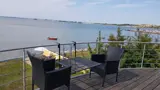 Nur einen Steinwurf vom Wasser entfernt liegt diese gemütliche und frisch renovierte Ferienwohnung im 1. Stock. Helles und behaglich eingerichtetes Wohnzimmer mit Ausgang auf eine große Terrasse. Von der Terrasse aus hat man Aussicht auf Mols und kann den Sonnenuntergang über dem Gebiet genießen. In offener Verbindung zum Wohnzimmer liegt die schicke Küche, die u. a. mit Geschirrspüler ausgestattet ist. Die fünf Schlafplätze verteilen sich auf ein Schlafzimmer mit Doppelbett, einen Alkoven in Wohnzimmer und ein Schlafsofa. Alternativ kann der über eine gute Leiter erreichbare Hängeboden als Schlafplatz genutzt werden. Schönes Badezimmer mit Dusche. Das Haus ist mit Internet ausgestattet und man darf gerne einen Hund mitbringen.