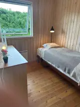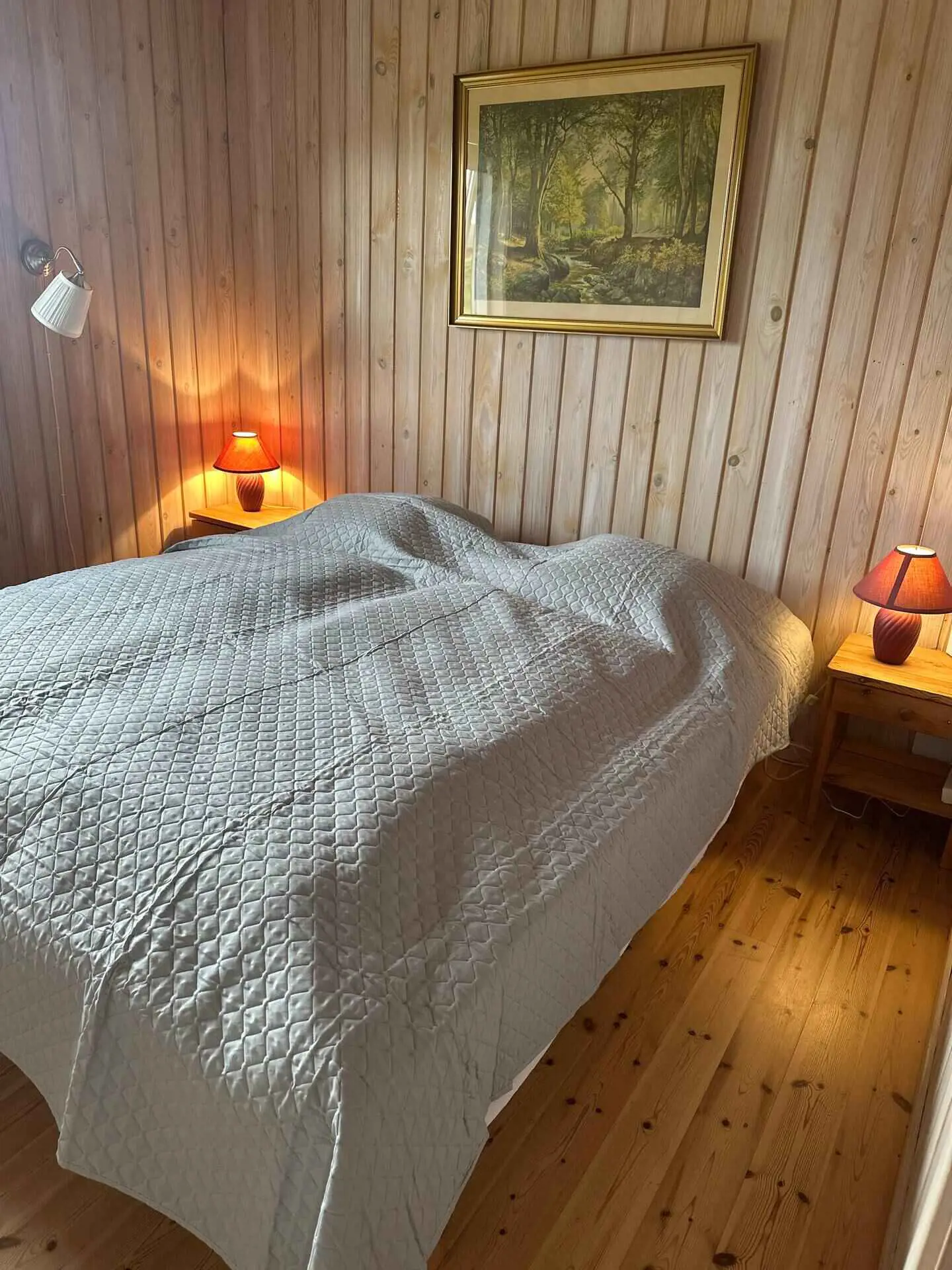 Die Einrichtung ist schlicht und funktional, mit Fokus auf Komfort. Das Wohnzimmer führt direkt in den Garten, und das Bad verfügt über eine gepflegte Dusche. Das Haus wurde frisch hergerichtet und eignet sich für Urlaub, Arbeit oder ruhige Auszeiten.