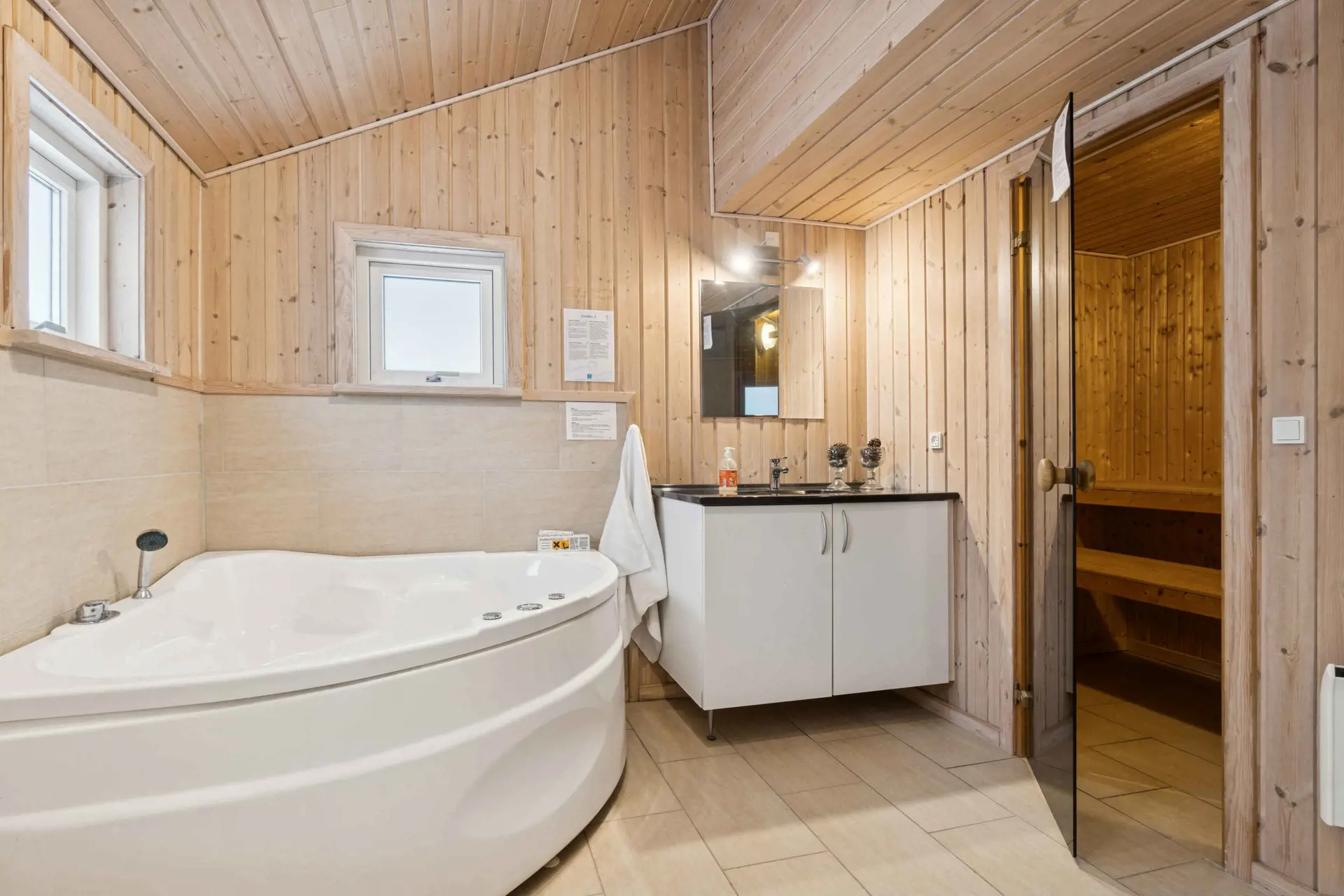 Das Haus verfügt über drei schöne Schlafzimmer sowie einen geräumigen Dachboden, wodurch es sich für zwei Familien oder mehrere Generationen eignet. Das Badezimmer ist schön eingerichtet und verfügt sowohl über einen Whirlpool als auch eine Sauna, in denen man sich nach den Erlebnissen des Tages entspannen kann.