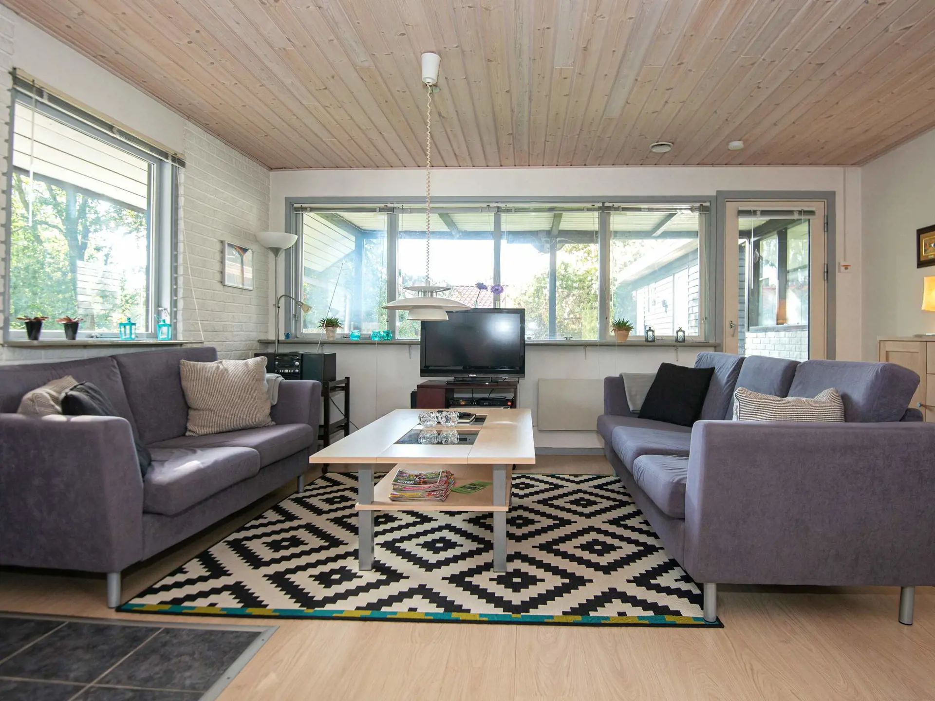 Ferienhaus in leicht erhöhter Lage, auf einem Naturgrundstück mit großer Rasenfläche für Spiel und Spaß. Das Ferienhaus ist in typisch skandinavischem Stil eingerichtet, mit hellen Räumlichkeiten und vielen Fenstern, die für schönen Lichteinfall sorgen.