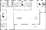 Die Schlafplätze verteilen sich auf 5 Schlafräume. 8 Schlafplätze in Doppelbetten. 4 Schlafplätze in Etagenbetten. Ferner steht ein Kinderbett zur Verfügung.