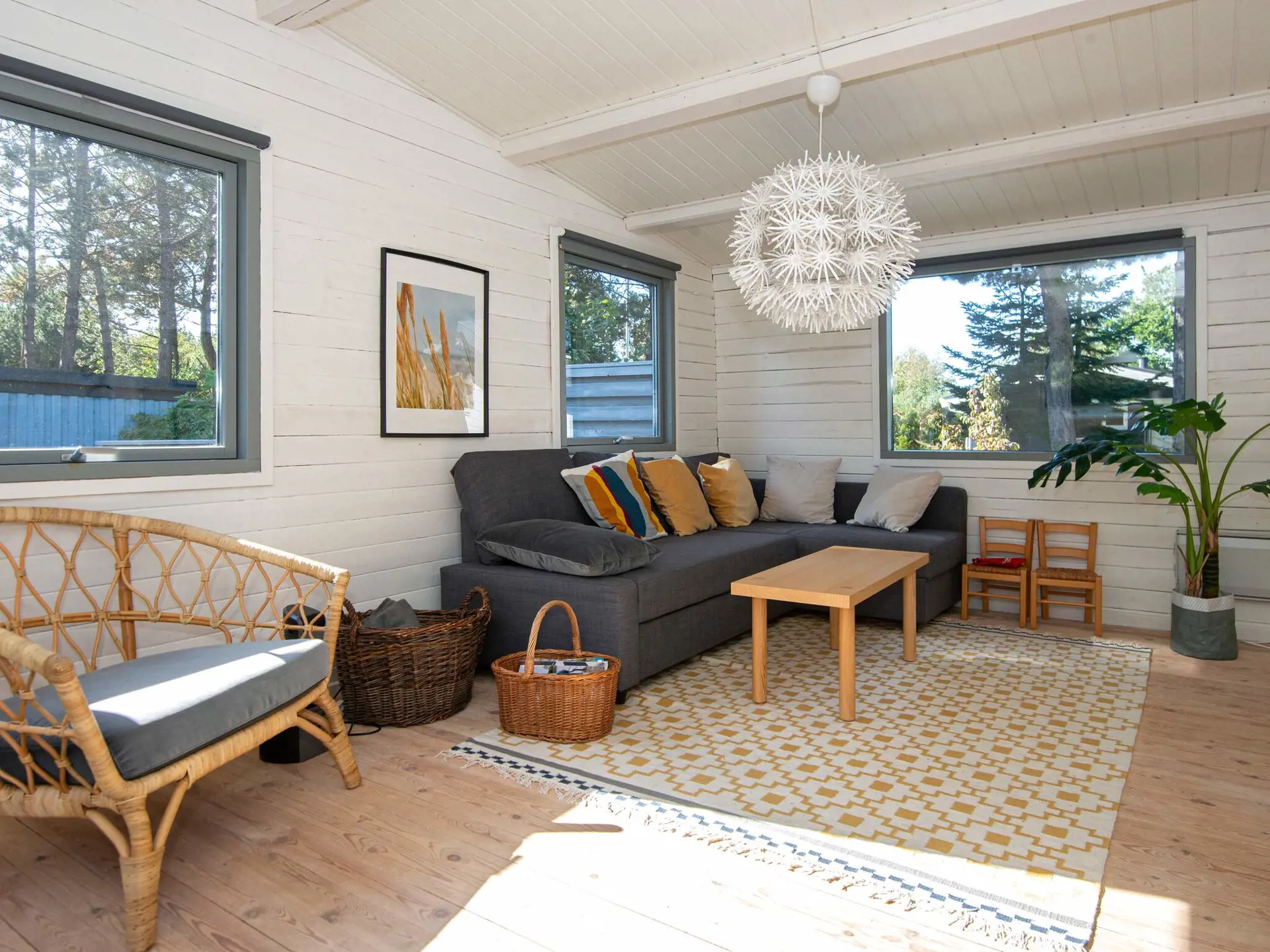 Schön gelegenes, kleines Ferienhaus bei Boeslum Strand, ideal für eine kleine Familie, die im Urlaub gerne Brettspiele spielt, genüsslich kochen mag und Spaziergänge in der Umgebung macht. Küche und Wohnzimmer sind kombiniert, so dass die Gespräche auch beim Kochen nicht unterbrochen werden müssen. Ihre Mahlzeiten können Sie auf der Terrasse einnehmen, auf der auch ein Grill bereit steht. Im Garten können die Kinder prima toben oder im Sandkasten buddeln.