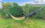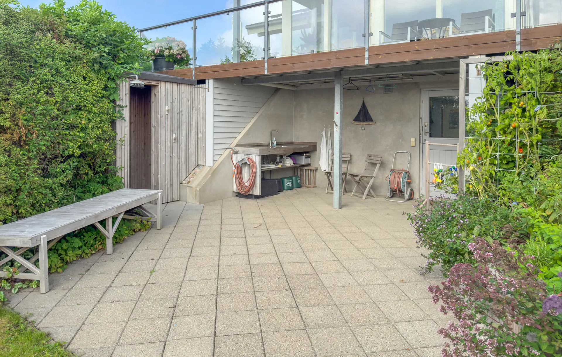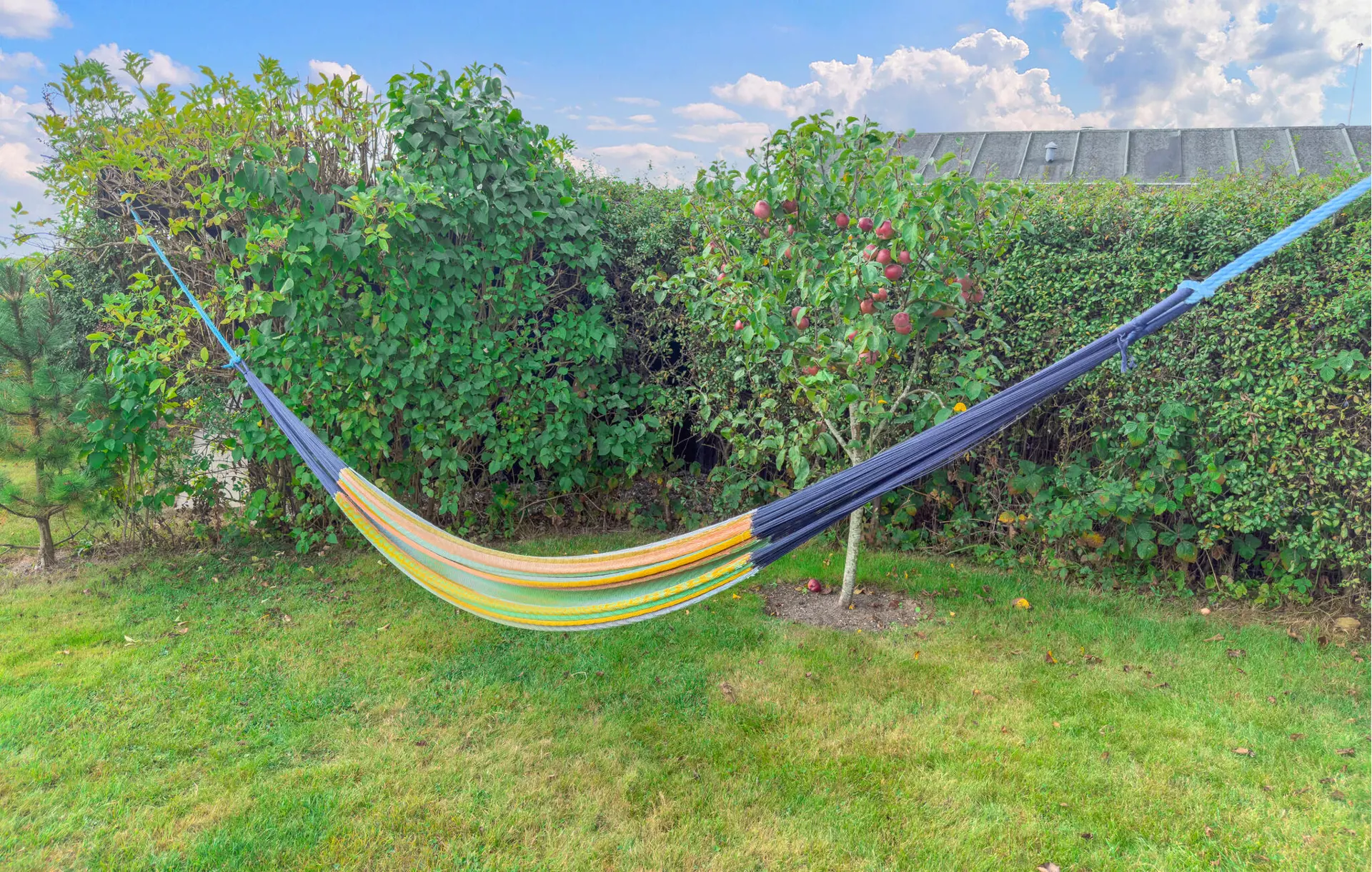 Der geschützte Gartenbereich bietet zudem ausreichend Platz für Spiel und Erholung. Gehen Sie hinaus auf die weitläufige Terrasse und verbringen Sie sonnige Stunden an der frischen Luft. Nehmen Sie in der Hängematte Platz oder nutzen Sie die Feuerstelle im Garten für gesellige Abende unter freiem Himmel. Nutzen Sie auch die Shelter-Hütte für ein besonderes Outdoor-Erlebnis.