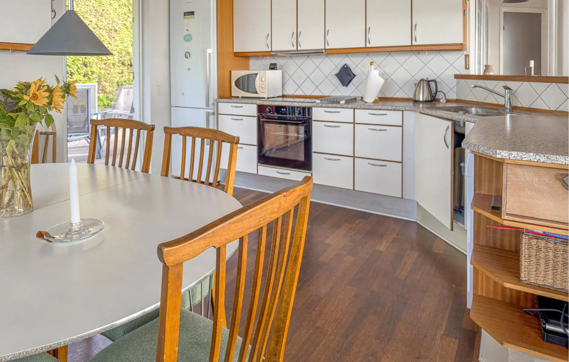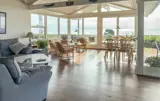 Im lichtdurchfluteten Wohnbereich werden Sie sich sofort willkommen fühlen. Lassen Sie den Blick durch die großen Panoramafenster bis zum Meer schweifen und entspannen Sie auf dem gemütlichen Sofa. Genießen Sie gesellige Abende vor dem Kamin oder bereiten Sie in der Küche köstliche Mahlzeiten zu, die Sie am Esstisch mit Meerblick genießen. Entdecken Sie außerdem die Sauna und den Whirlpool, die Ihnen pure Erholung bieten.