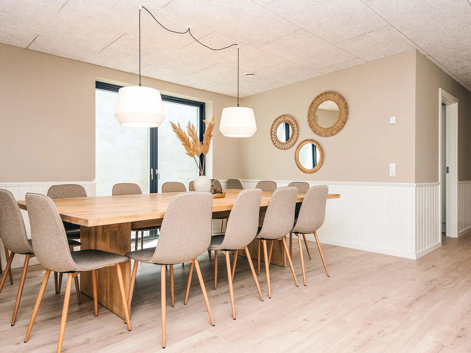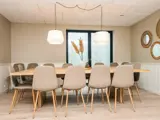 Dieses stimmungsvolle Ferienhaus im nordischen Stil bietet Platz für bis zu 16 Personen und ist ideal für große Familien oder mehrere Generationen, die ihren Urlaub gemeinsam verbringen möchten. Das Haus verbindet Gemütlichkeit, Gemeinschaft und Entspannung in ruhiger Umgebung. Die große Holzterrasse mit Gartenmöbeln, Grill und Badefass lädt zu geselligen Stunden im Freien ein. Im Inneren erwarten Sie großzügige Gemeinschaftsbereiche, eine funktionale Küche sowie ein Aktivitätsraum mit Billard, Tischtennis und Spielkonsole. Für zusätzliche Entspannung sorgt der Wellnessbereich mit Sauna und Whirlpool. Das Ferienhaus verfügt über 7 Schlafzimmer, darunter ein Zimmer mit Etagenbetten, sowie 2 Badezimmer. Eine Ladestation für Elektroautos ist ebenfalls vorhanden. Die Lage nahe Ebeltoft ermöglicht Ausflüge zu Strand, Natur und der charmanten Altstadt.