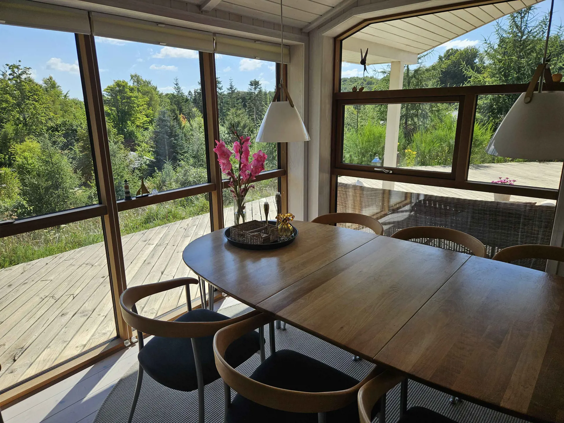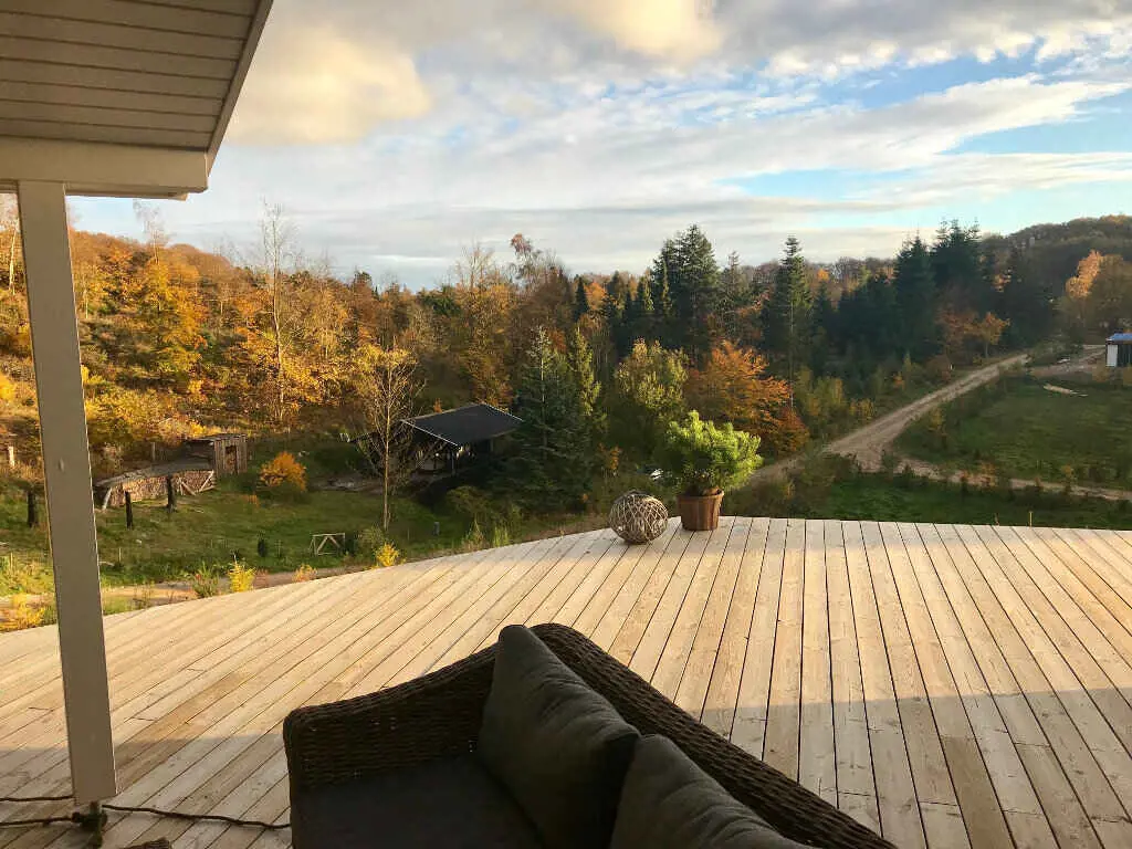 Neueres Ferienhaus (2018) mit besonders hoher Lage und einzigartiger Aussicht. Das Haus liegt in Femmøller / Mols Bjerge und bietet Platz für 8 Personen.