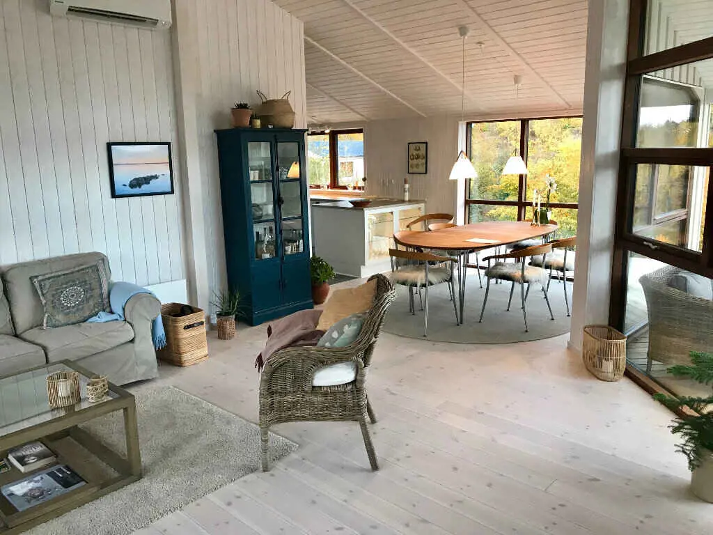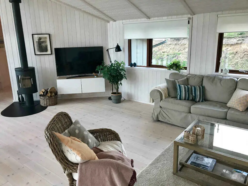 Hier befinden sich ein schönes, großes und gut ausgestattetes Wohnzimmer, in dem Sie ein Holzofen finden. Es gibt TV mit dänischen und internationalen Sendern sowie Internet..