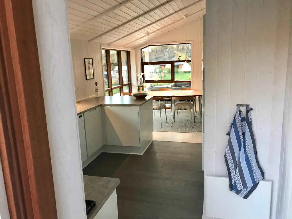 Die schöne, offene Küche steht in Verbindung mit dem grossen Wohnzimmer und ist komplett mit Spülmaschine etc. ausgestattet. Das Haus ist ca. 146 m2 und ist fußbodengeheizt sowie mit Wärmepumpe ausgestattet.
