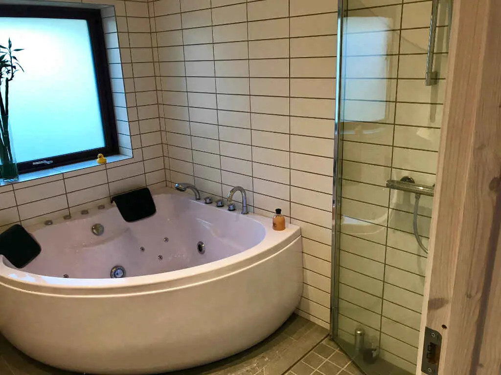 Es gibt 2 Badezimmer, von denen eines mit einem köstlichen Spa für 2 Personen ausgestattet ist. Darüber hinaus gibt es eine Außendusche, wenn Sie die frische Luft in Kombination mit Ihrer Dusche genießen möchten.Es gibt auch eine Waschmaschine.