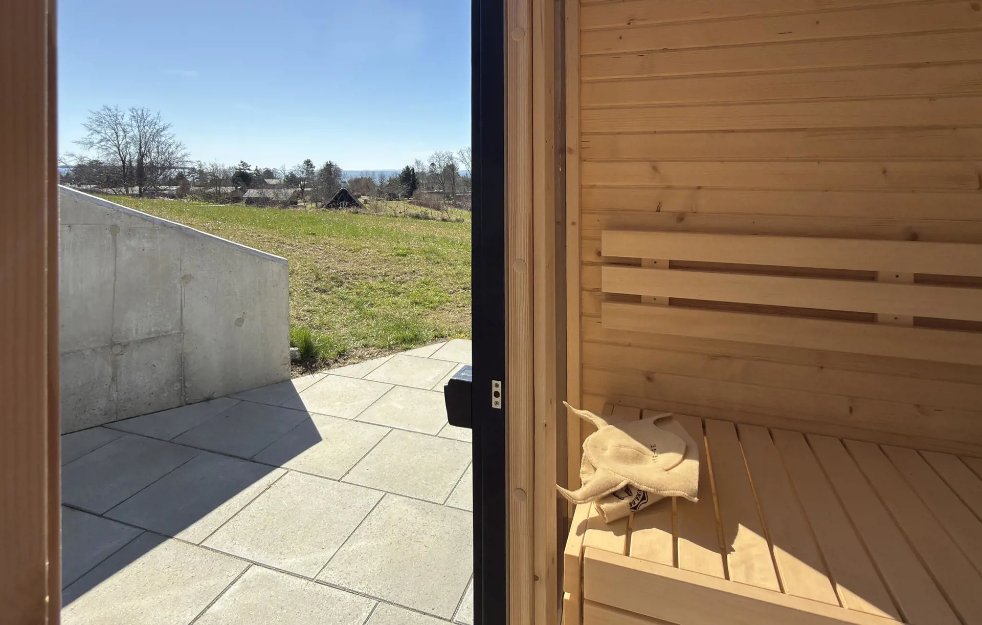 Verbringen Sie Zeit auf den großzügigen Terrassen mit verschiedenen Sitzbereichen, wahlweise überdacht, sonnig oder geschützt. Nutzen Sie den Whirlpool, genießen Sie die Aussicht oder lassen Sie einfach die Ruhe der Umgebung auf sich wirken. Der große Garten bietet viel Platz zum Spielen oder für ein Sonnenbad.