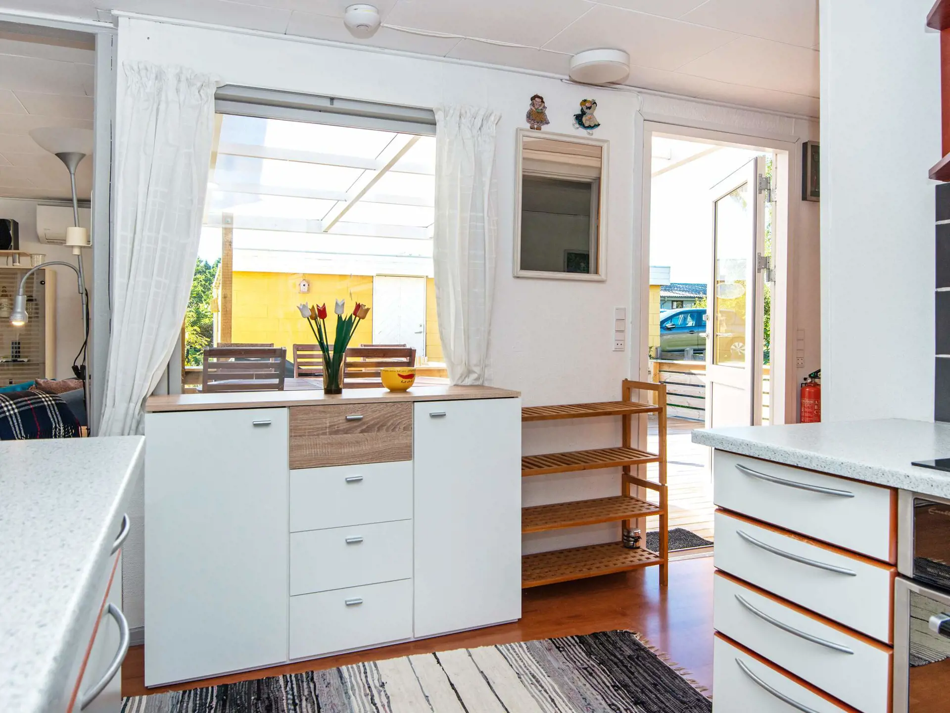 Ferienhaus in ruhiger Lage in einem Ferienhausgebiet. Das Haus wurde 2016 renoviert mit u.a. einer neuen Küche. Da die Küche im Wohnraum offen integriert ist, können alle beim Essen Zubereiten beisammen sein. Zum großen Schlafzimmer gehört ein eigens Bad. Im anderen Schlafzimmer stehen zwei Einzelbetten und im Wohnzimmer eine doppelte Aufbettung.